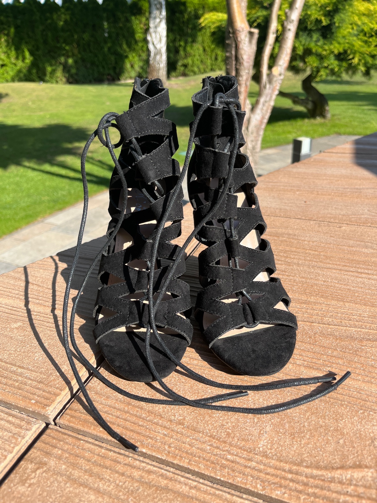 Nadherne sandalky na vysokom podpatku LADY BRAIDED SANDAL GUESS na kazdodenne nosenie ale aj na spolocensku prilezitost v zakladnej ciernej farbe,zadne zapinanie na zips,zips zlaty kov 100% origina...