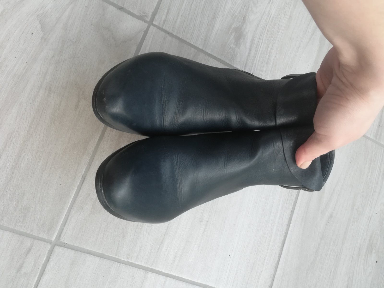 V peknom nosenom stave celokožené polo čižmičky. Veľkosť 37. Farba tmavo zelená no niekto mi tvrdí, že tmavo sivá. SÚ ultra ľahučké a mäkkučké. Pôvodná cena vysoká. Vydenzifikované zvnútra aktívnym striebrom a navoskované včelím voskom pripravené pre novú majiteľku.