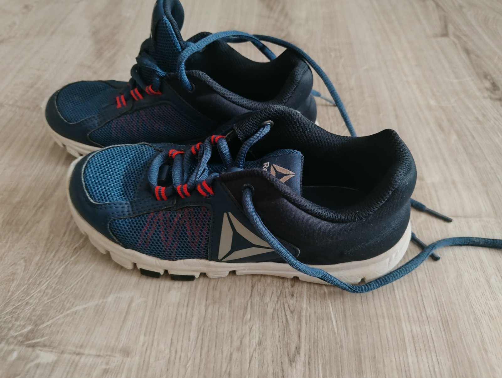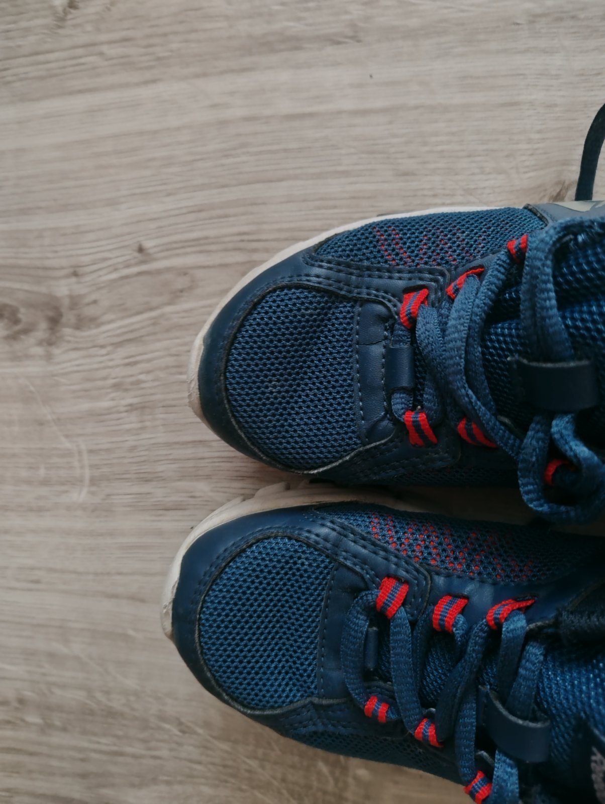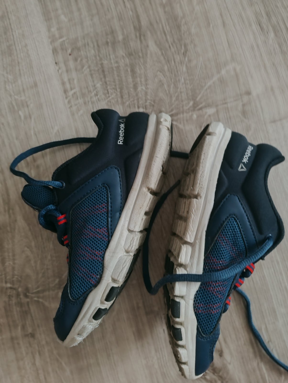Nosené, nie je väčšie poškodenie. Známky nosenia vidieť hlavne na podrážke. Nerozlepuju sa,držia pevne. Textilné. Vnútorná dĺžka topánky 19,5 cm.