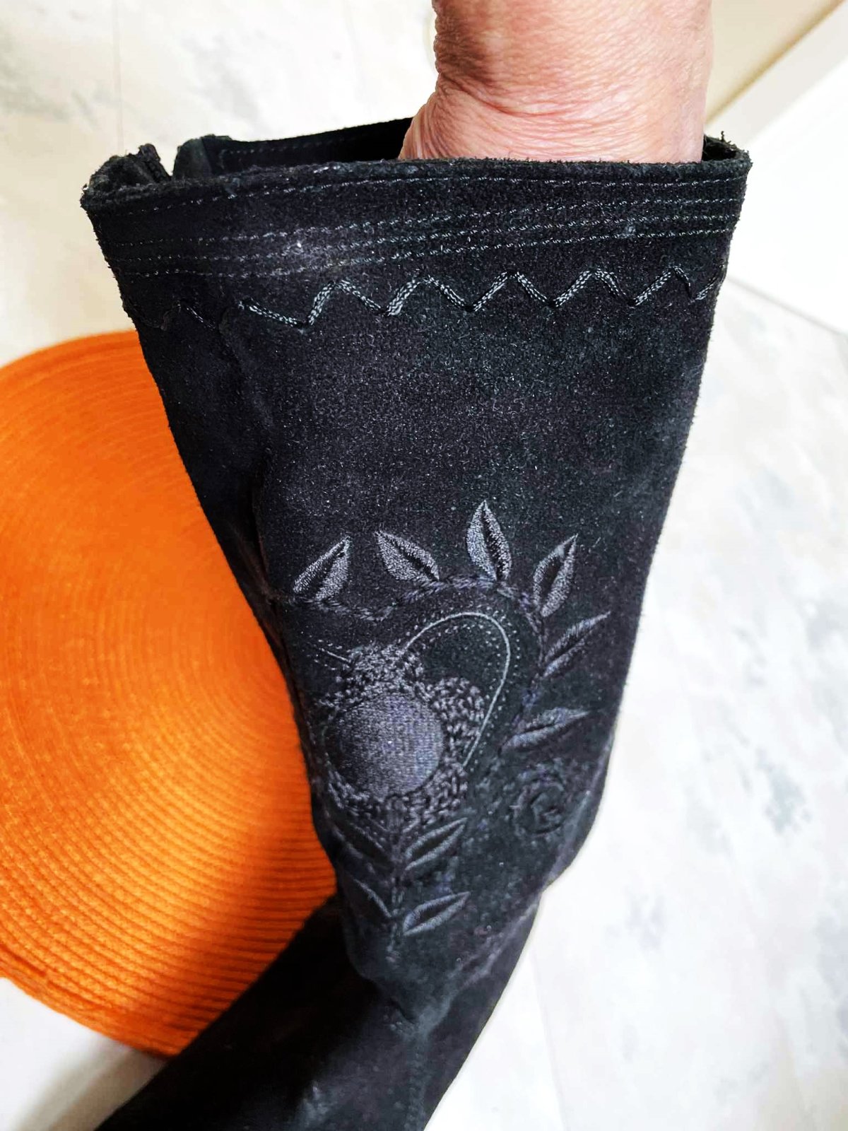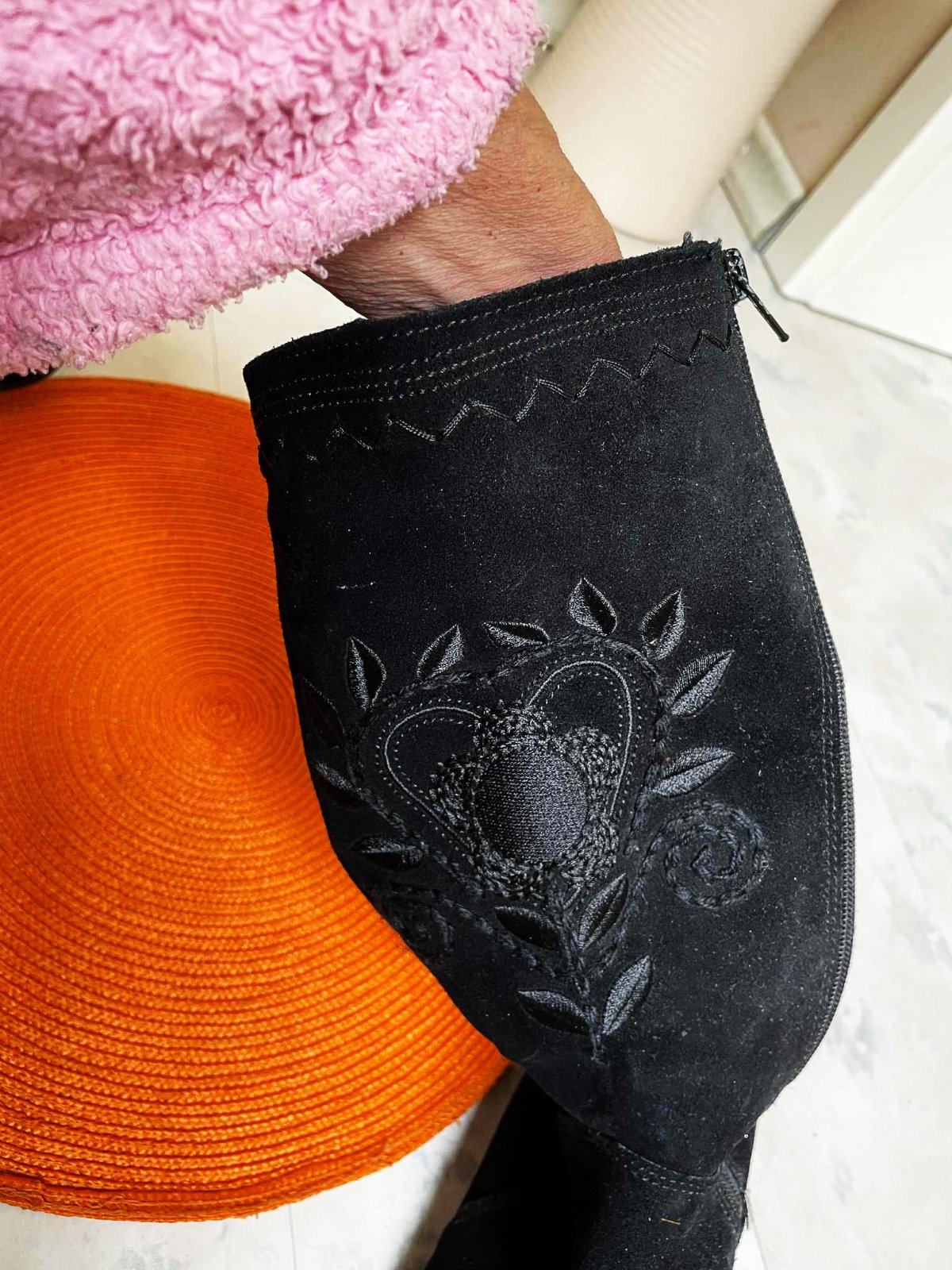 zaujímavé,netuctové a neznosené zateplené čižmy,kvalitné švy,vhodné aj na širšiu nohu,veľmi pohodlné,noha nevyzerá čaptavo - jemný malý klinový podpätok,krásne sedia na nohe,vpredu vyšívaný vzor,vo vnútri na 1 čižme jemne ošúchaný flis ( vložka ) - viď posl. foto