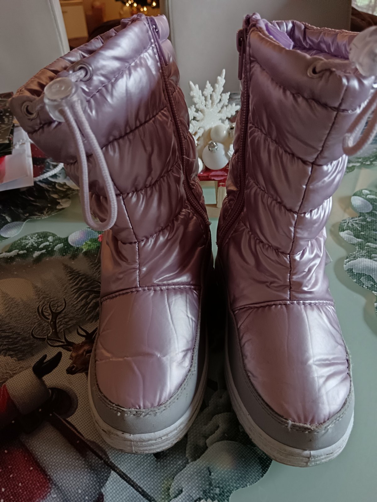 Posunieme ďalej snehulky, velmi teplé a nepremokave. Zial uz nas tlačia. Dcerka ich mala obute asi 3x. Stav ako na foto. Su oprate.