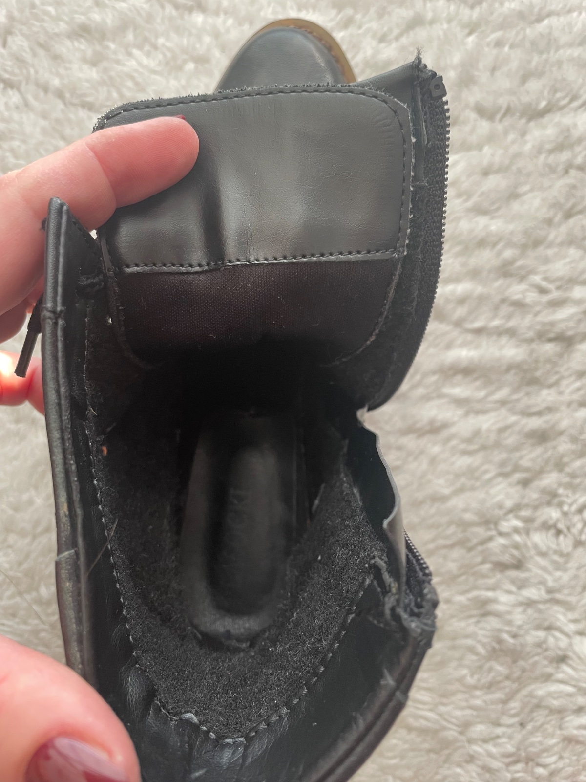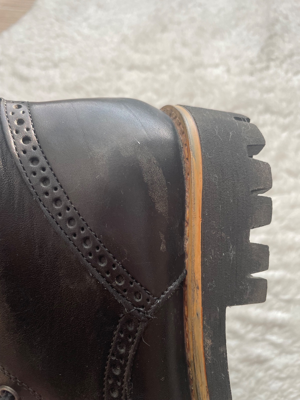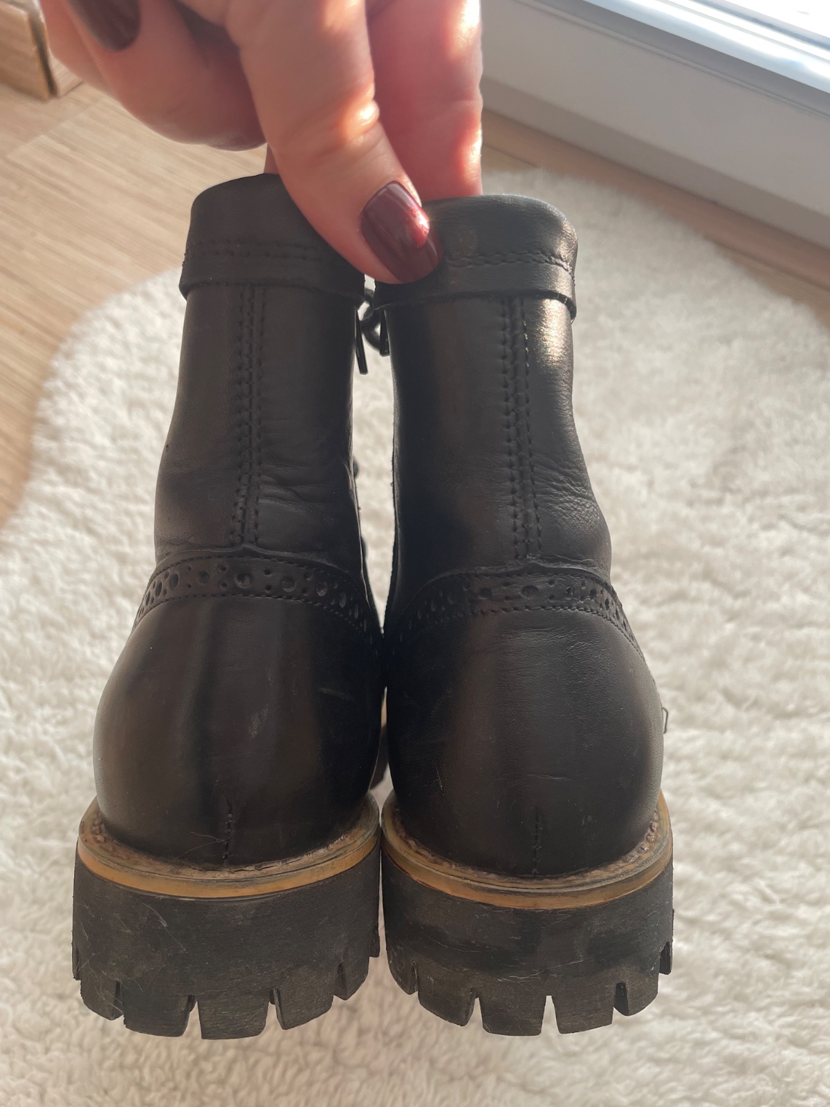 Cierne snurovacie traktorove topanky s bocnym zipsom pre lahsie zapinanie, v kombinacii s hnedou na podrazke, opotrebenia vid foto.