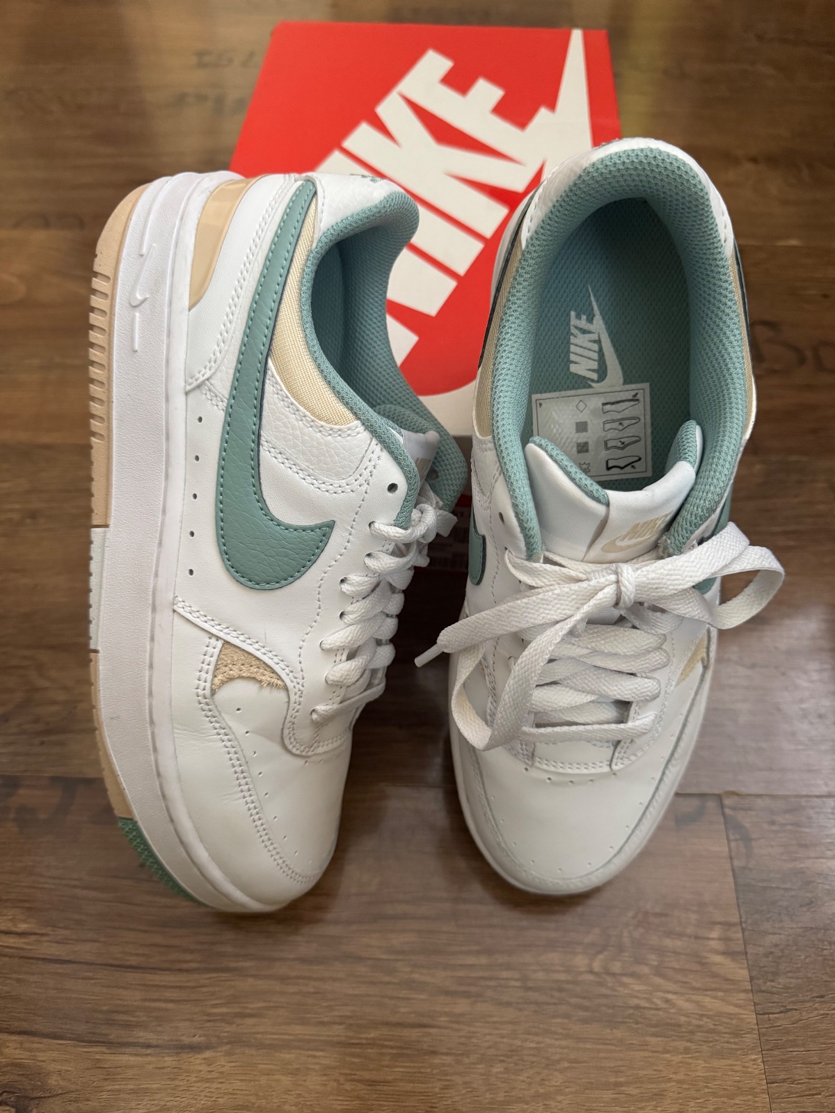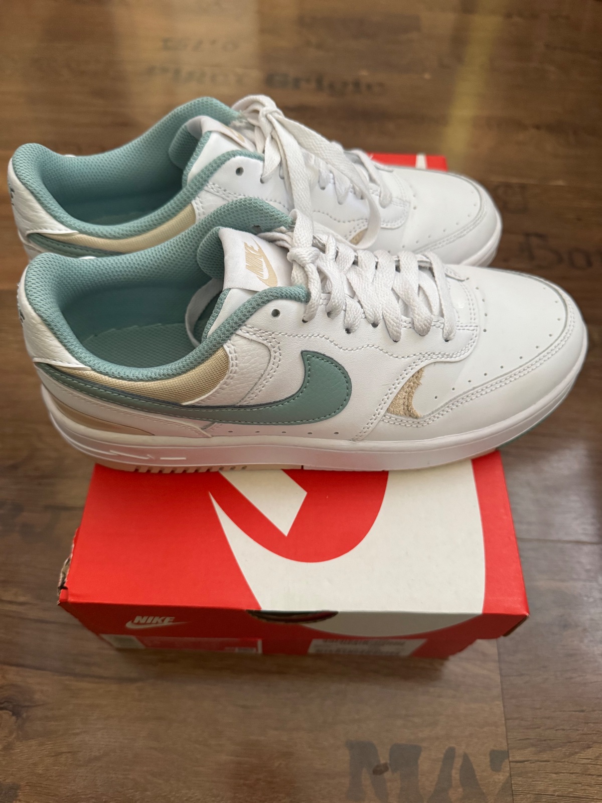 Ponúkam krásne tenisky originál Nike Gamma Force v bielo - béžovo - zelenej kombinácii farieb. Veľkosť je uvedená 40 a vnútorná dĺžka je 25,5cm - za mňa ideál na nohu vo veľkosti medzi 25-25,5cm. Mala som ich 2x obuté, trošku ich cítim a potrebovala by som o pol čísla väčšie, tak posúvam. Inak sú super aj farebne. Poštovné podľa taríf.
