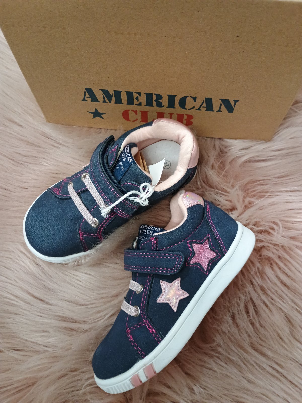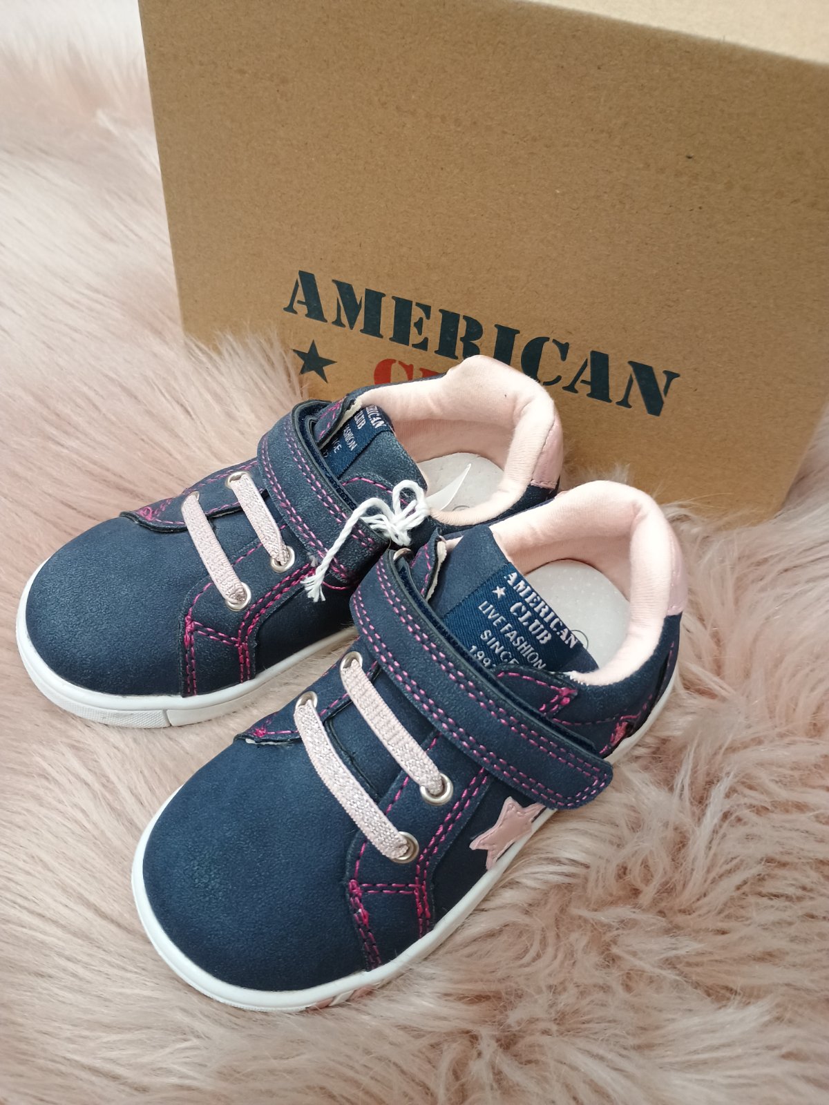 Dievčenské tenisky od značky American v modrej farbe. Zapínanie je veľmi praktické. A to na šnúrky a suchý zips. Vďaka tomu sa vie dieťa jednoduchšie obuť a vyzuť a vie si topánku prispôsobiť k šírke chodidla. Gumená podrážka tlmí nárazy a ochraňuje chodidlo pred otrasmi. Veľkou výhodou obuvi je jej výnimočná ľahkosť. Zvršok je vyrobený z ekologickej kože. Krásny dievčenský dizajn, doplnený srdiečkami zboku tenisiek.