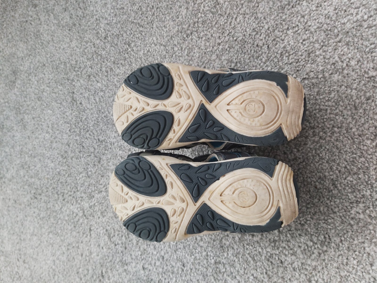 Pekný noseny stav bez poškodení. Dajú sa pekne prisposobit nozke, keďže sa zapinaju na 2 suché zipsy. Lepky sú ok, dobre držia. VD cca. 13cm, veľkosť 22.