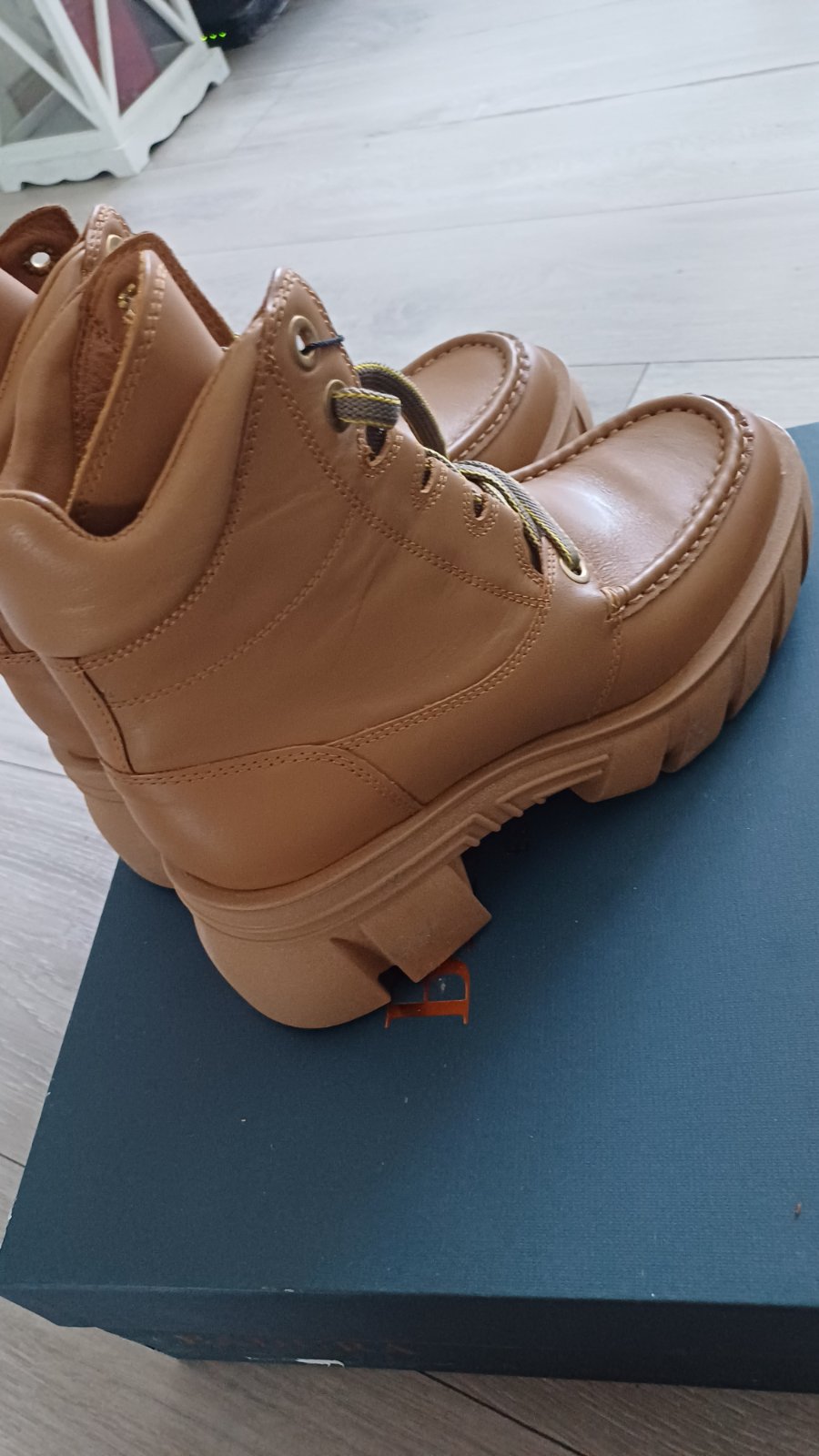 Obuté asi2x na fotenie,ešte sú pôvodné nálepky na spodku zabudli sme odlepiť.Svetlo hnedá akokeby brúsené koža,značka je Juliet.Bez poškodenia,krásna farba. Cena+pošta