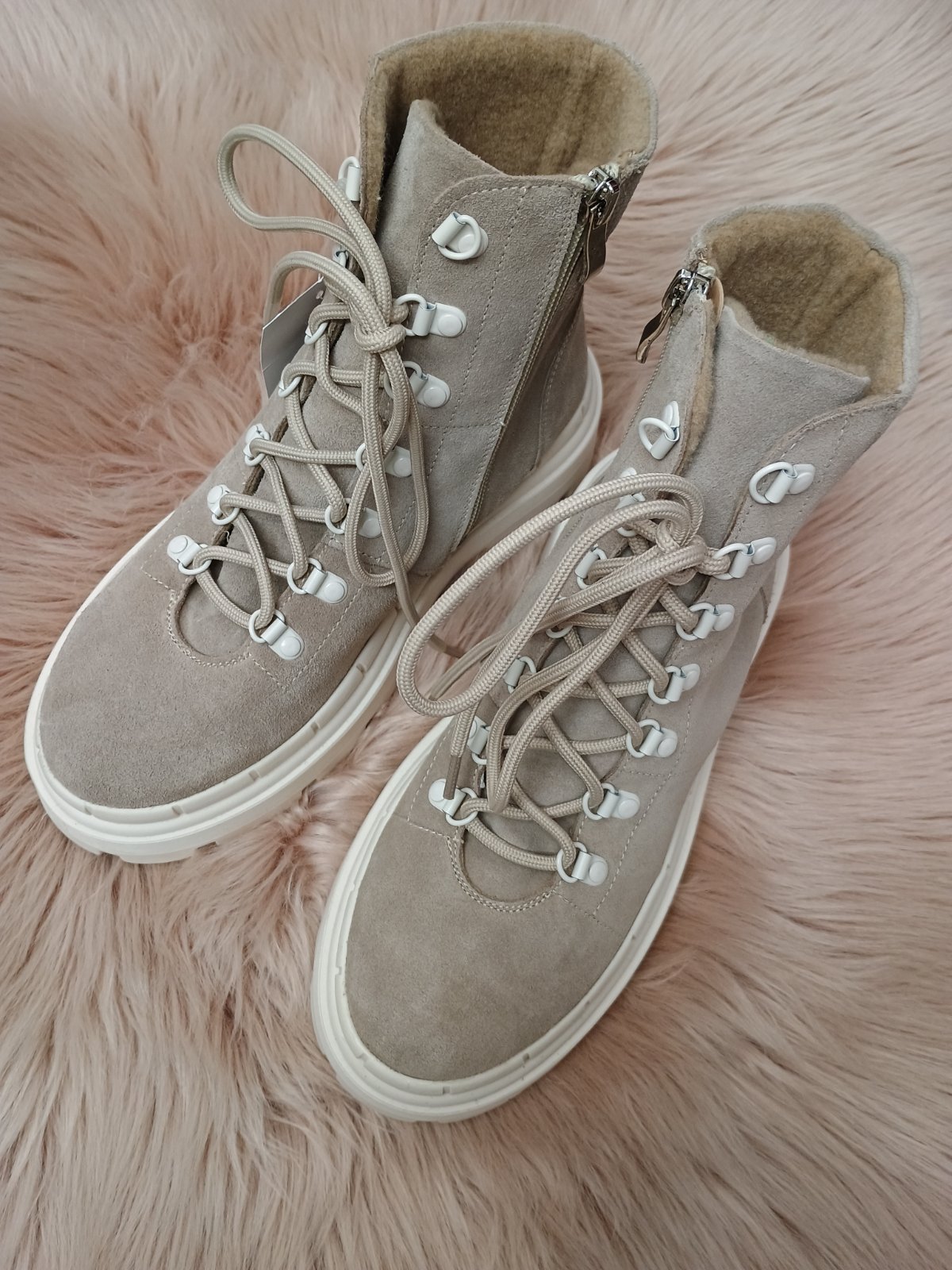 Damske kozene topanky jemne futrovane ,zapinanie aj zips aj snurky.material koza-nubuk.