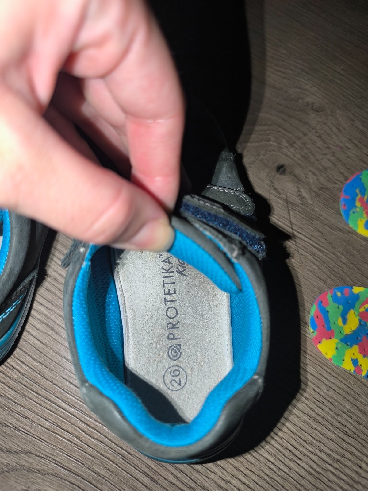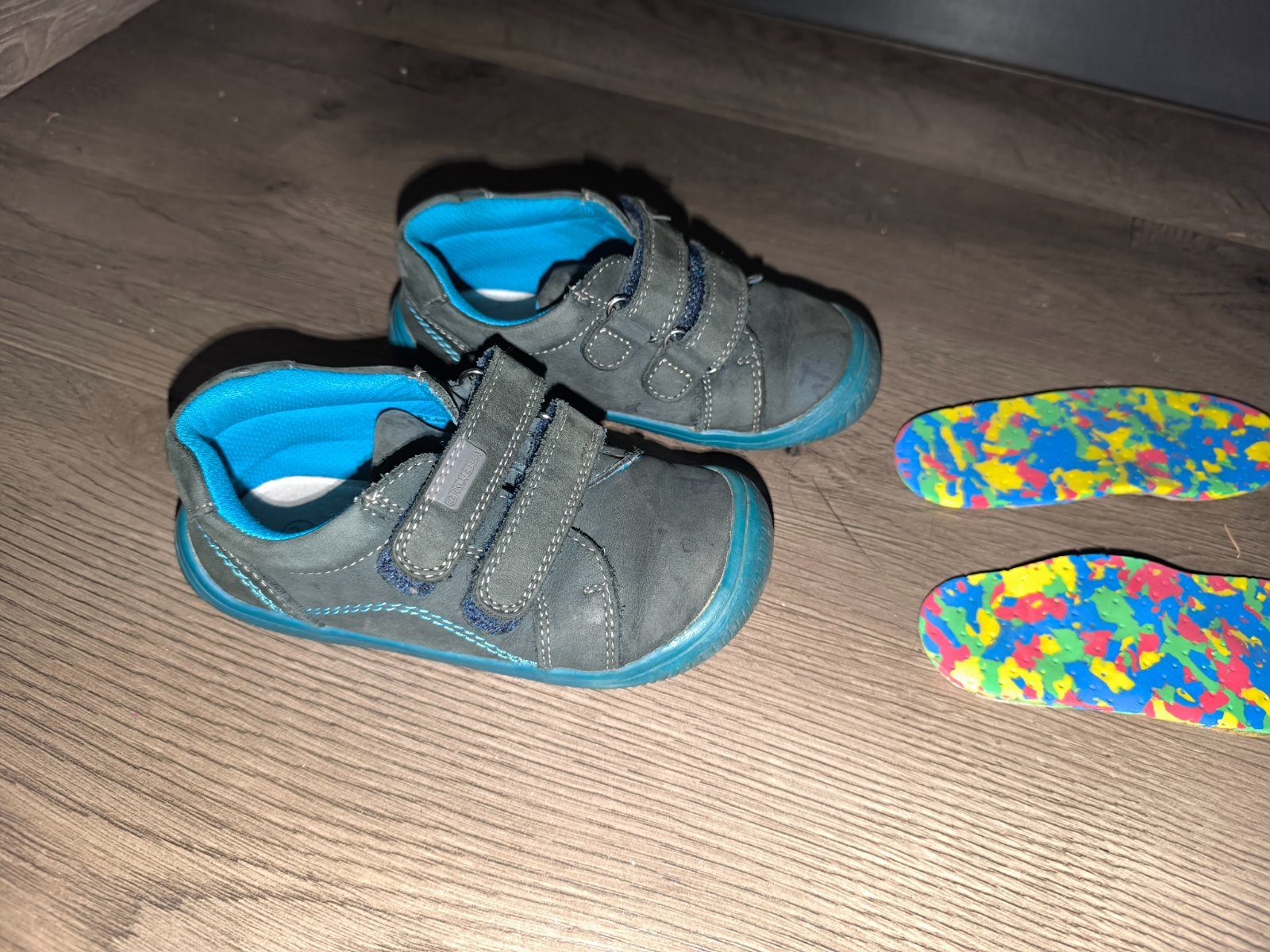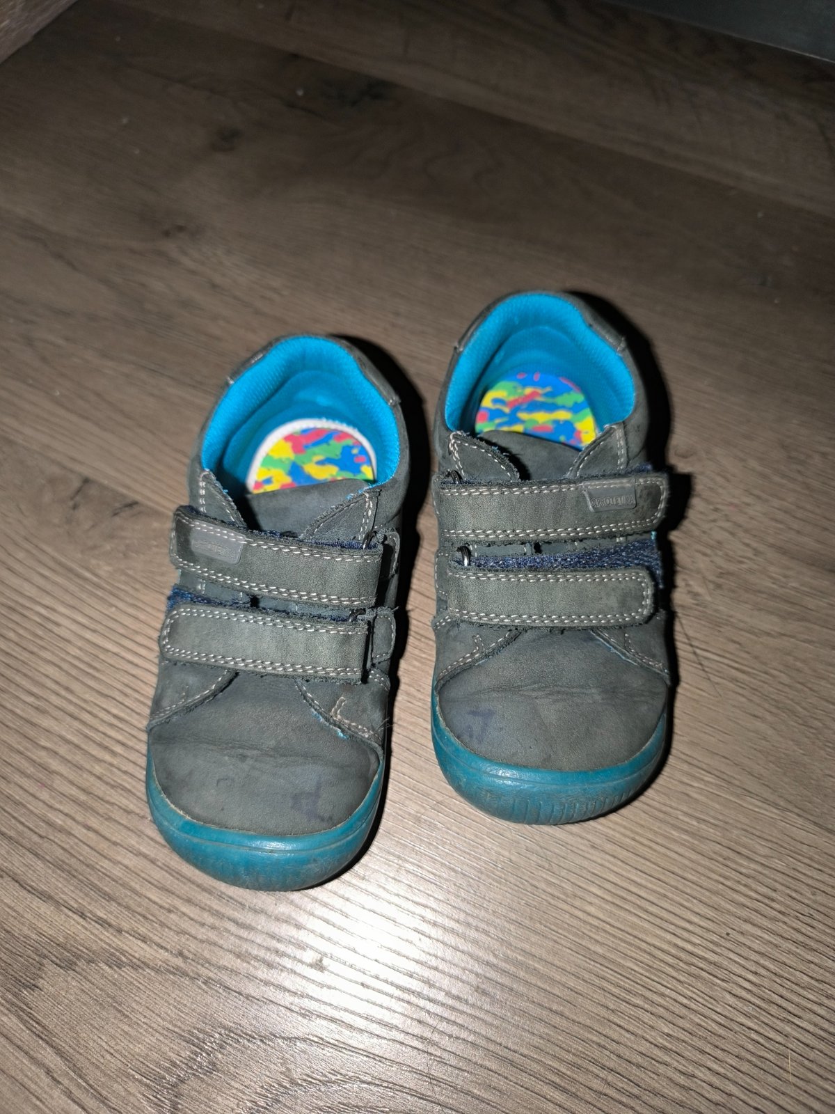 Prechodné topánky značky protetika, myslím že sú barefoot. Nemajú poškodenia zvnútra žiadne, ale na vrchu prednej časti kože sú slabé fľaky. Preto vhodné na donosenie alebo ako náhradné topánky. Veľkosť 26. Pridám aj ortopedické vložky.