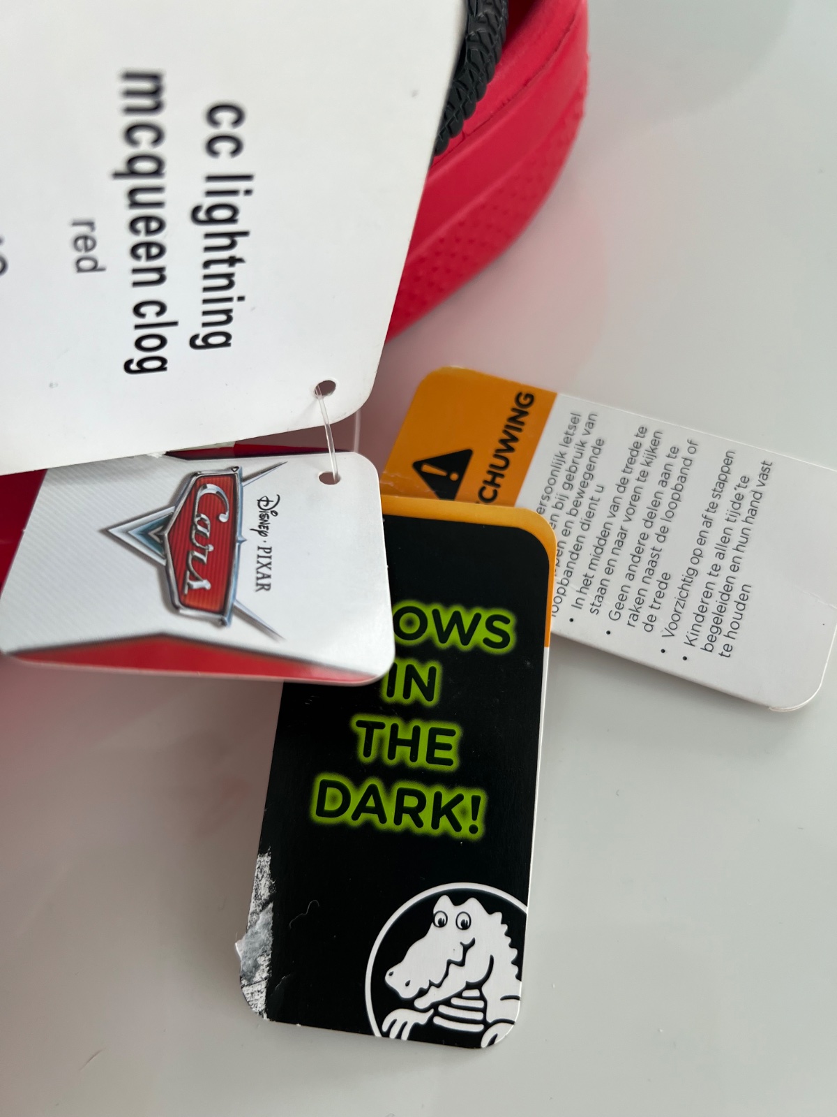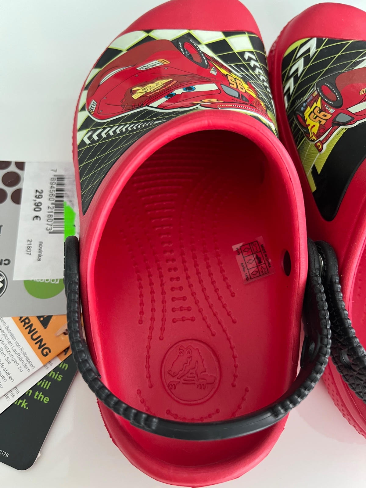 Krásne crocsy s tematikou rozprávky Autá McQueen. Veľkosť 33-34 (J1), veľkosť nohy 200mm. Nosené, ale veľmi dobrý stav. Vyčistené, na foto len tiene po obutí.