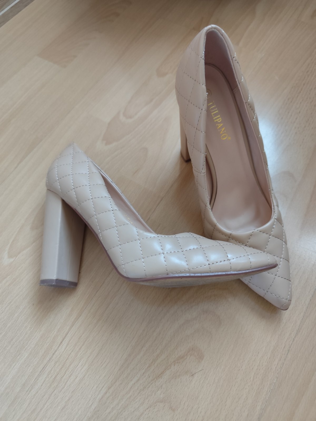 Párkrát obuté, posúvam ďalej lebo už nenosím topánku na vysokom podpätku... Výborný stav... Celková dĺžka 26 cm Výška podpätku 10cm