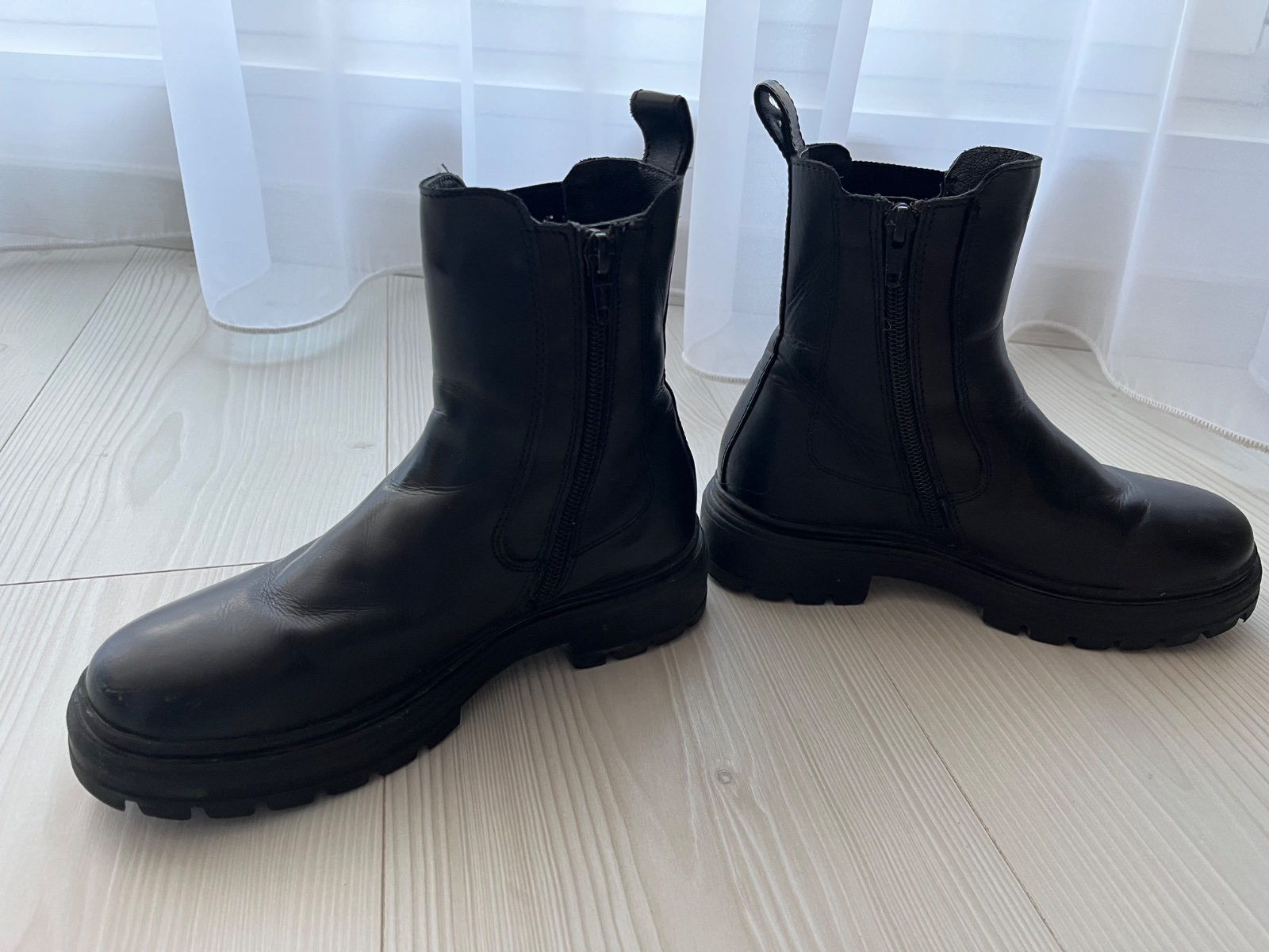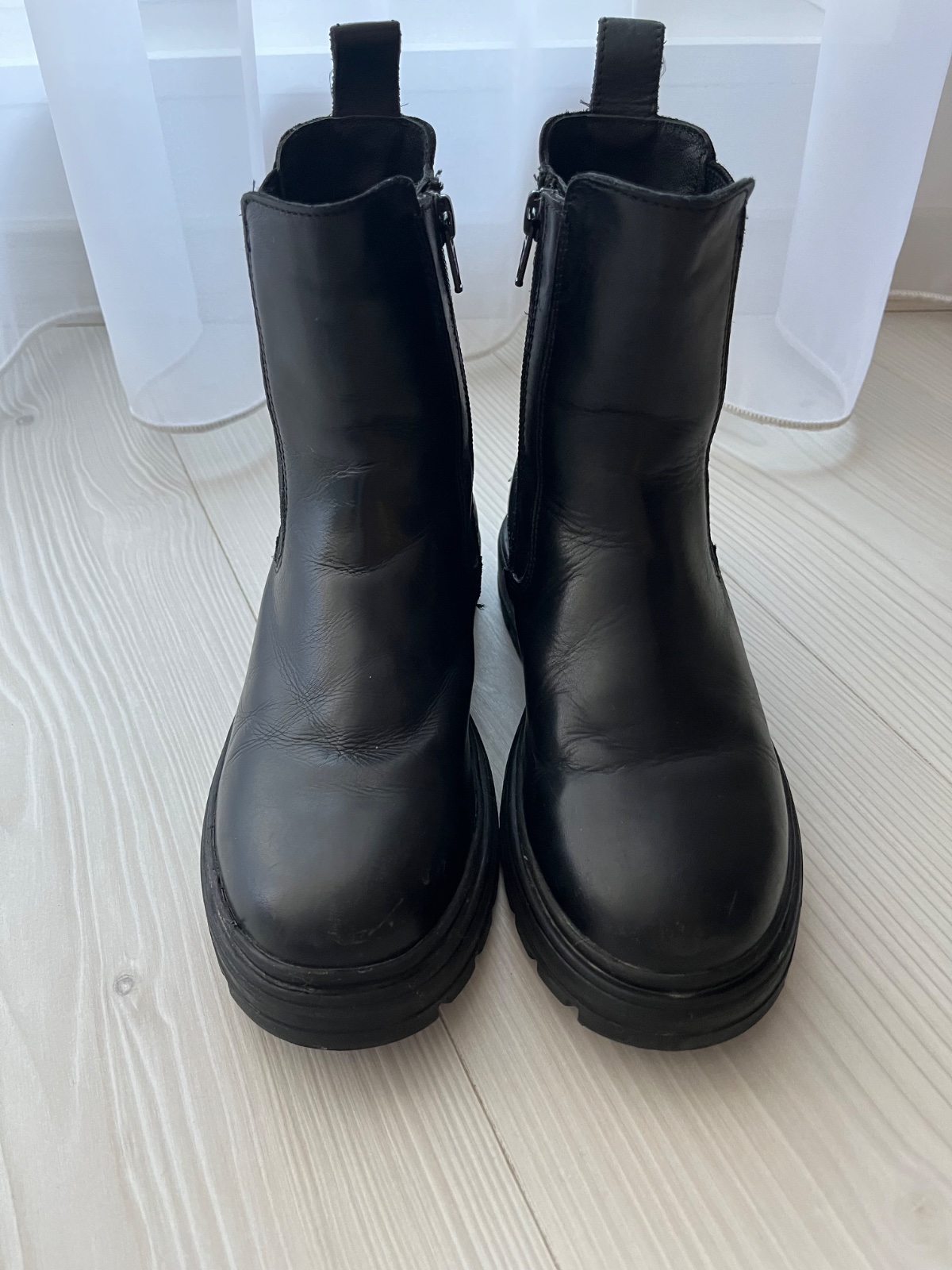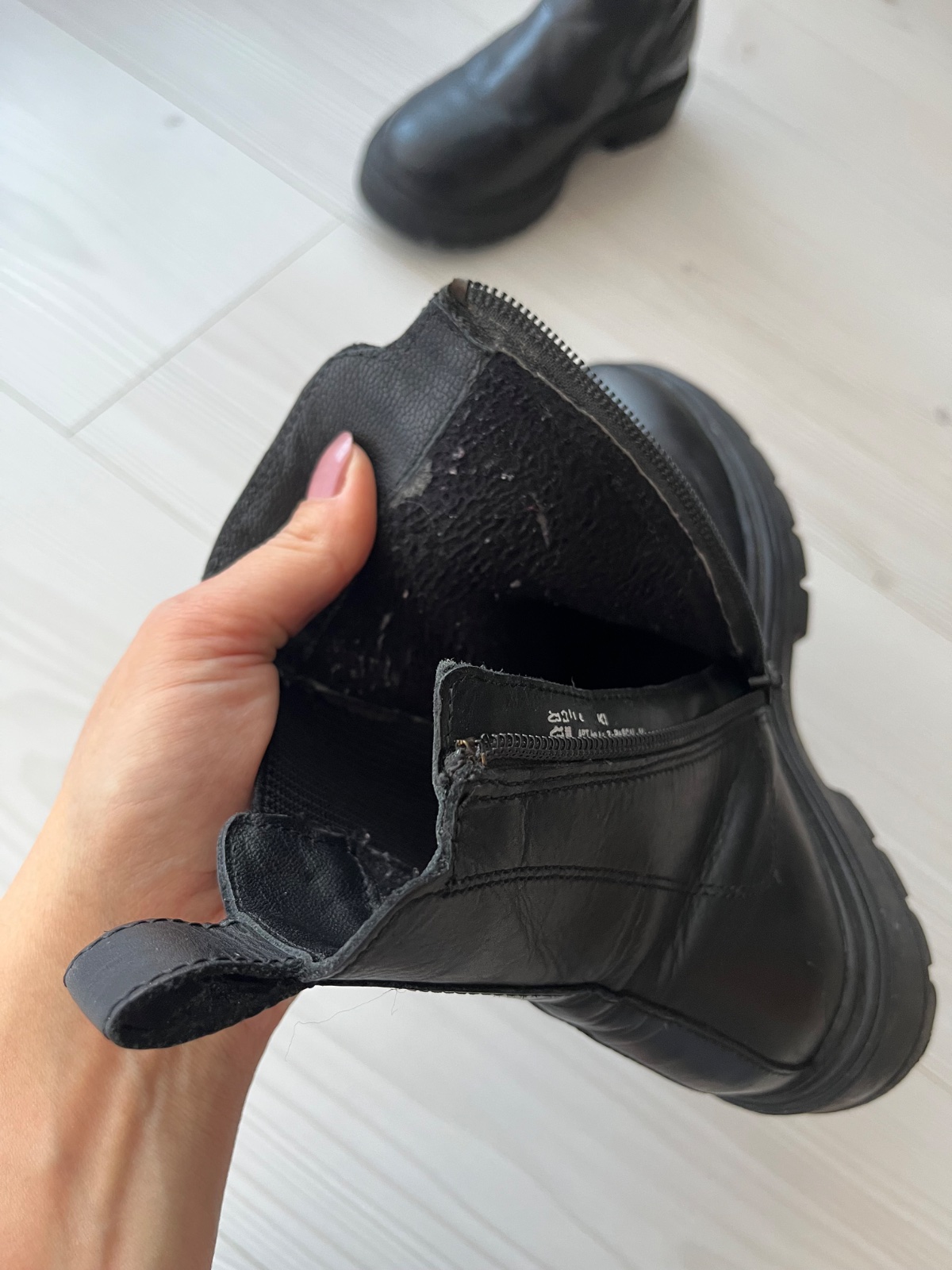 Kožené teplé topánky, frajerské, praktický zips na boku na uľahčenie obúvania, netreba rozväzovať šnúrky, nosené, podrážka nie je schodená, ale vpredu ošúchané, preto ich ponúkam za symbolickú cenu...