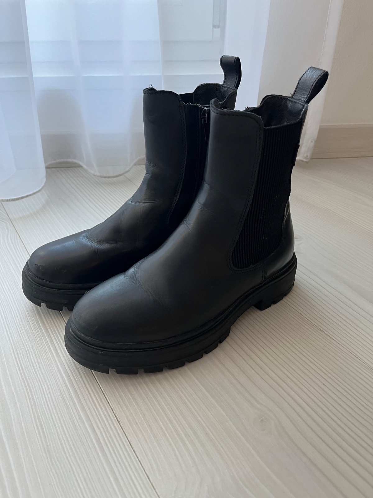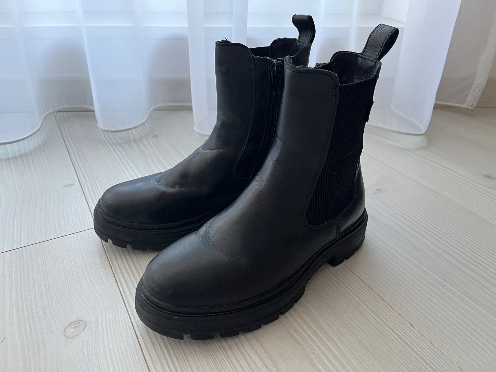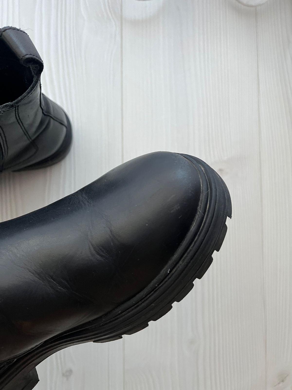 Kožené teplé topánky, frajerské, praktický zips na boku na uľahčenie obúvania, netreba rozväzovať šnúrky, nosené, podrážka nie je schodená, ale vpredu ošúchané, preto ich ponúkam za symbolickú cenu...