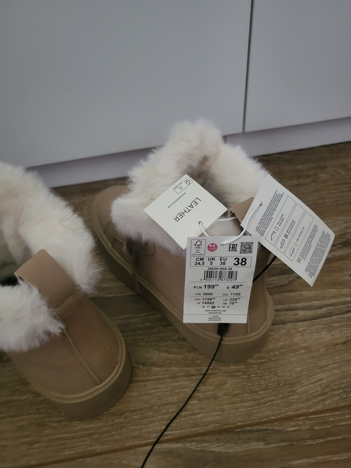 Zimbe topanky s jemnou kozusinou veljost 38, teplucke kozenne nove s visackou velmi pekne