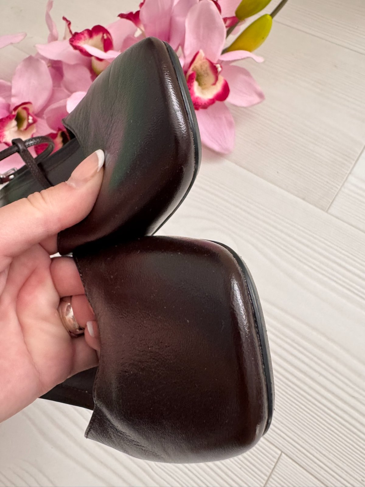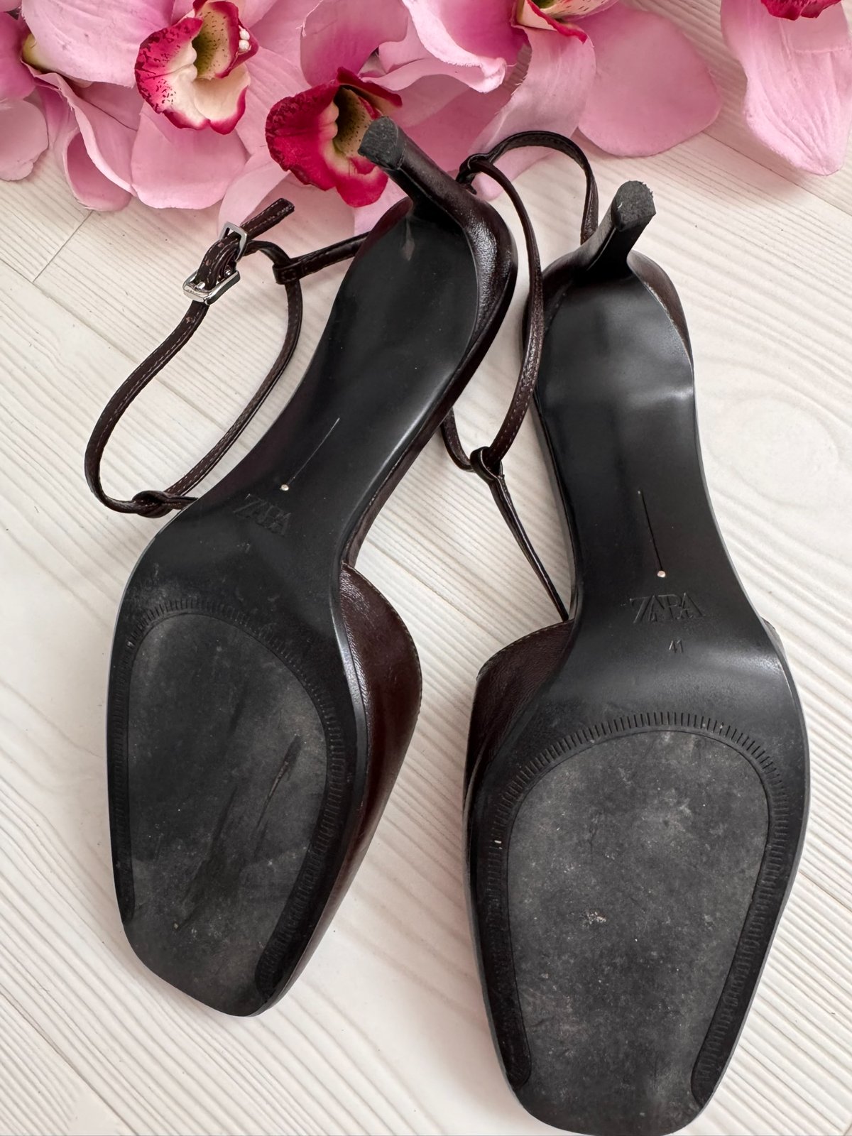 Lodičky s otvorenou pätou a lakovaným povrchom.