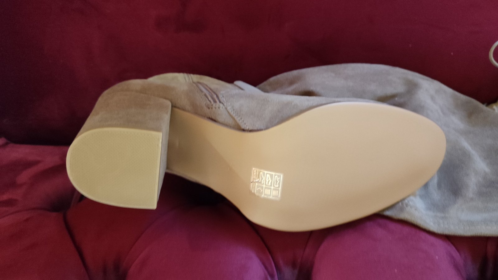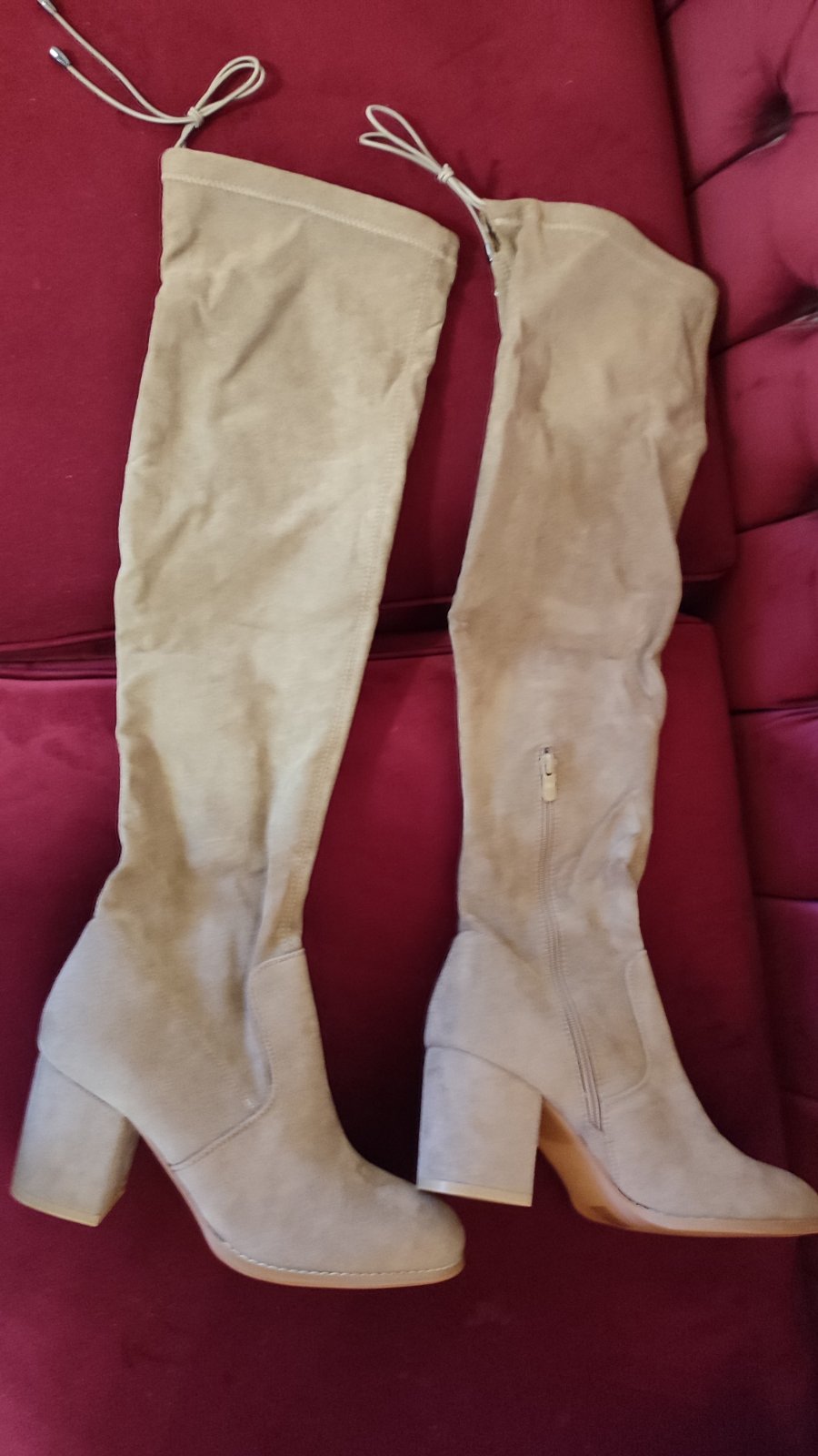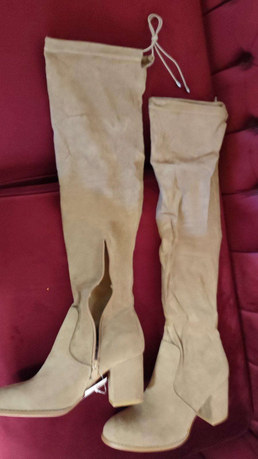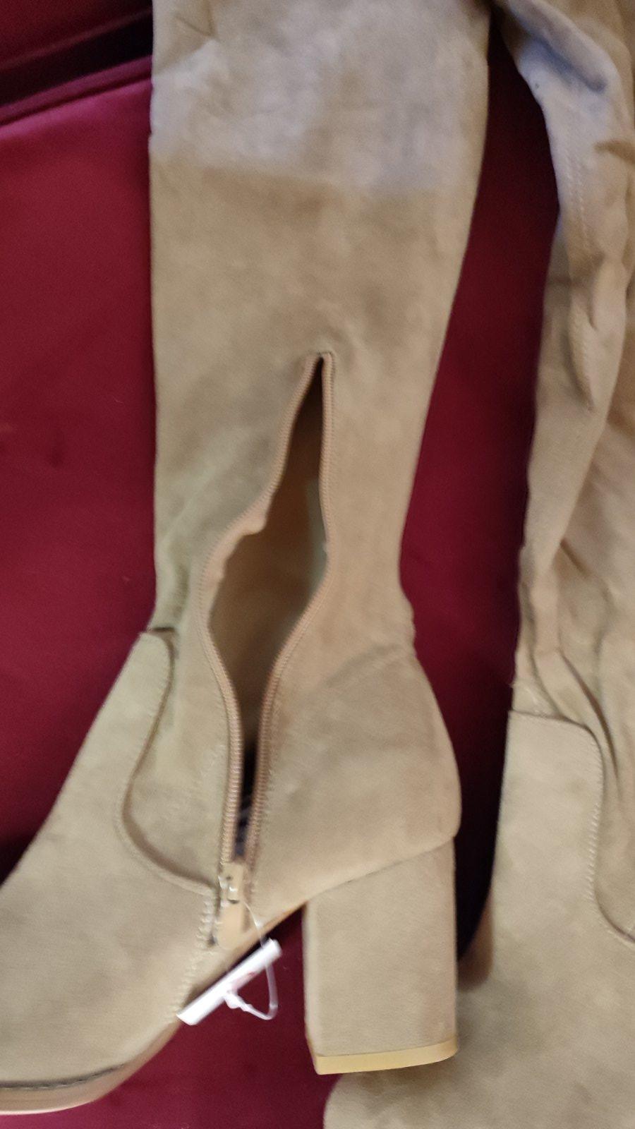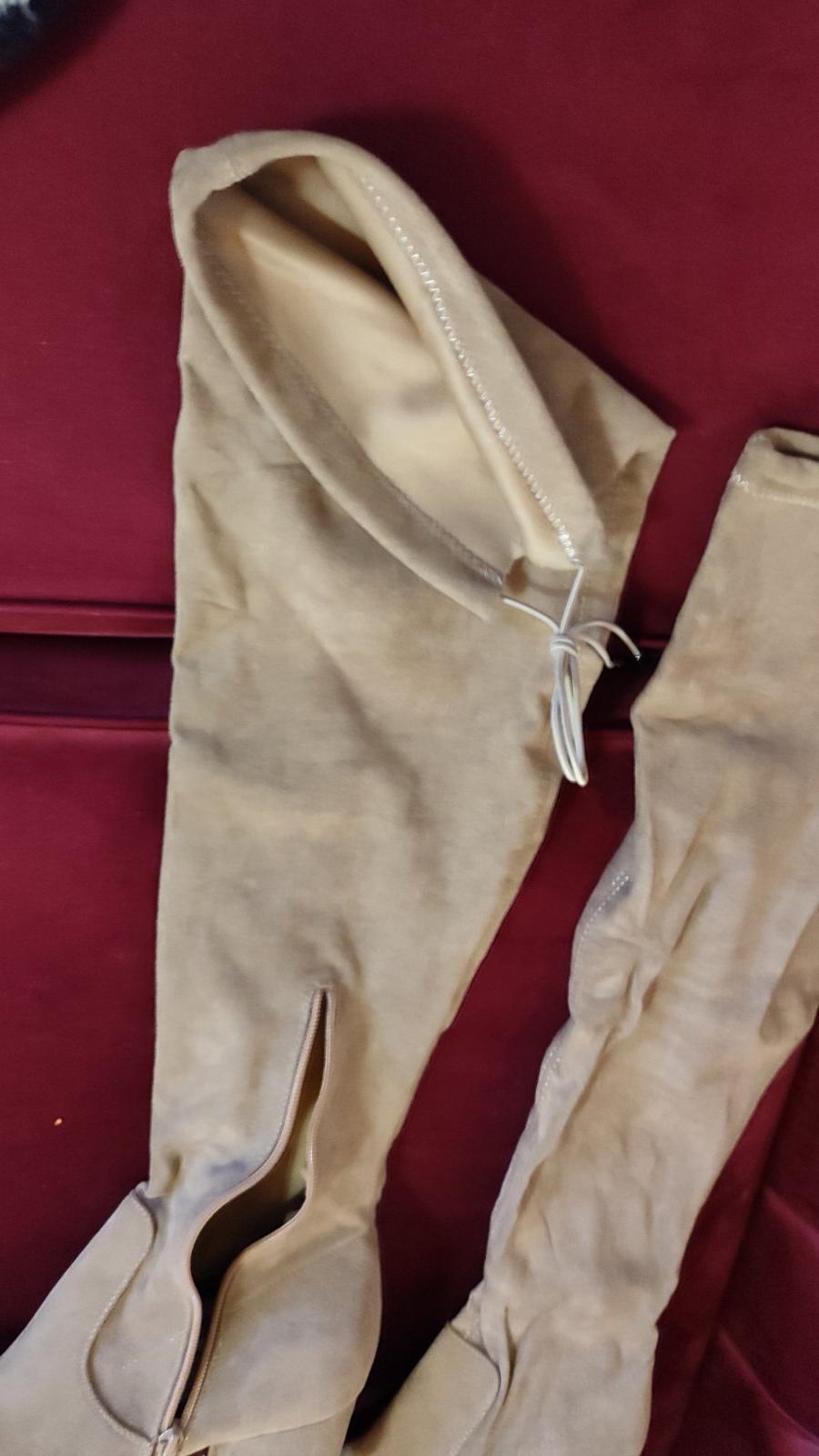 Vyrobené z mäkkého syntetického materiálu(ako semiš), ktorý pôsobí luxusne a elegantne, no zároveň je príjemný na nosenie. Vysoký strih nad kolená krásne predĺži nohy.