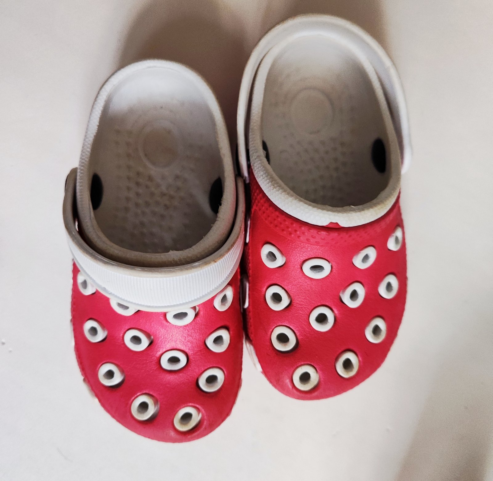 Predám nosené kroksy veľ. 6, naša cca 23. Na pravej šlapke trochu reznuté ale nie prerezané - viď foto. V prípade akýchkoľvek otázok rada odpoviem.