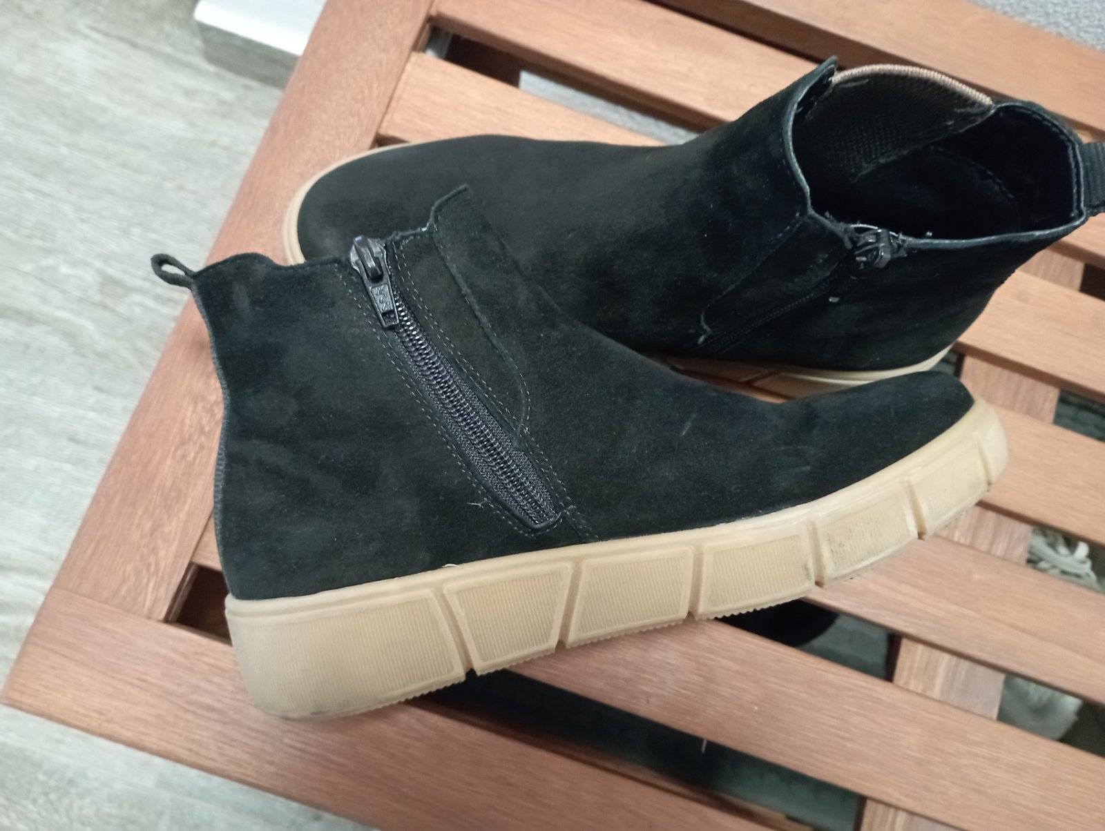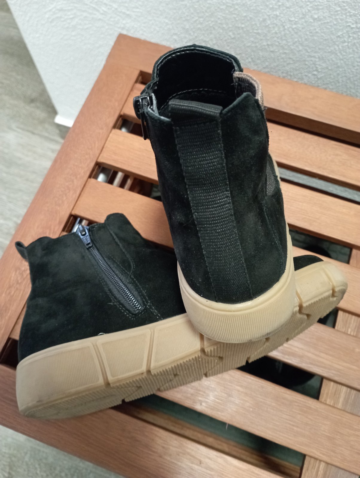 Brúsená koža,veľkosť udaná 37,vhodná aj na č. 38. Vyberateľná vložka s memory penou meria 24 cm.