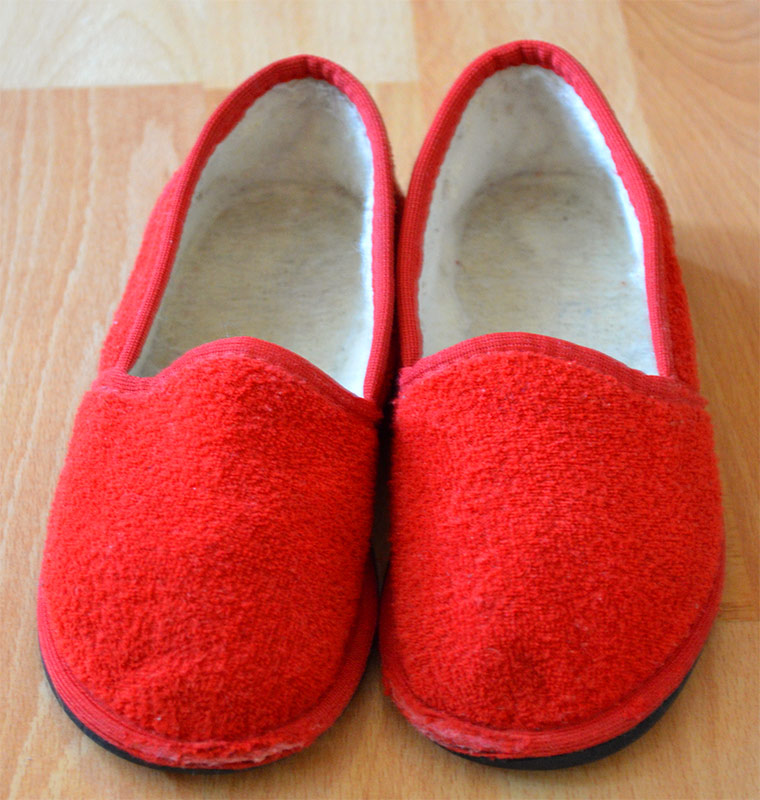 Papuce cervene latkove (frote), klasicke, vel. 28-29.