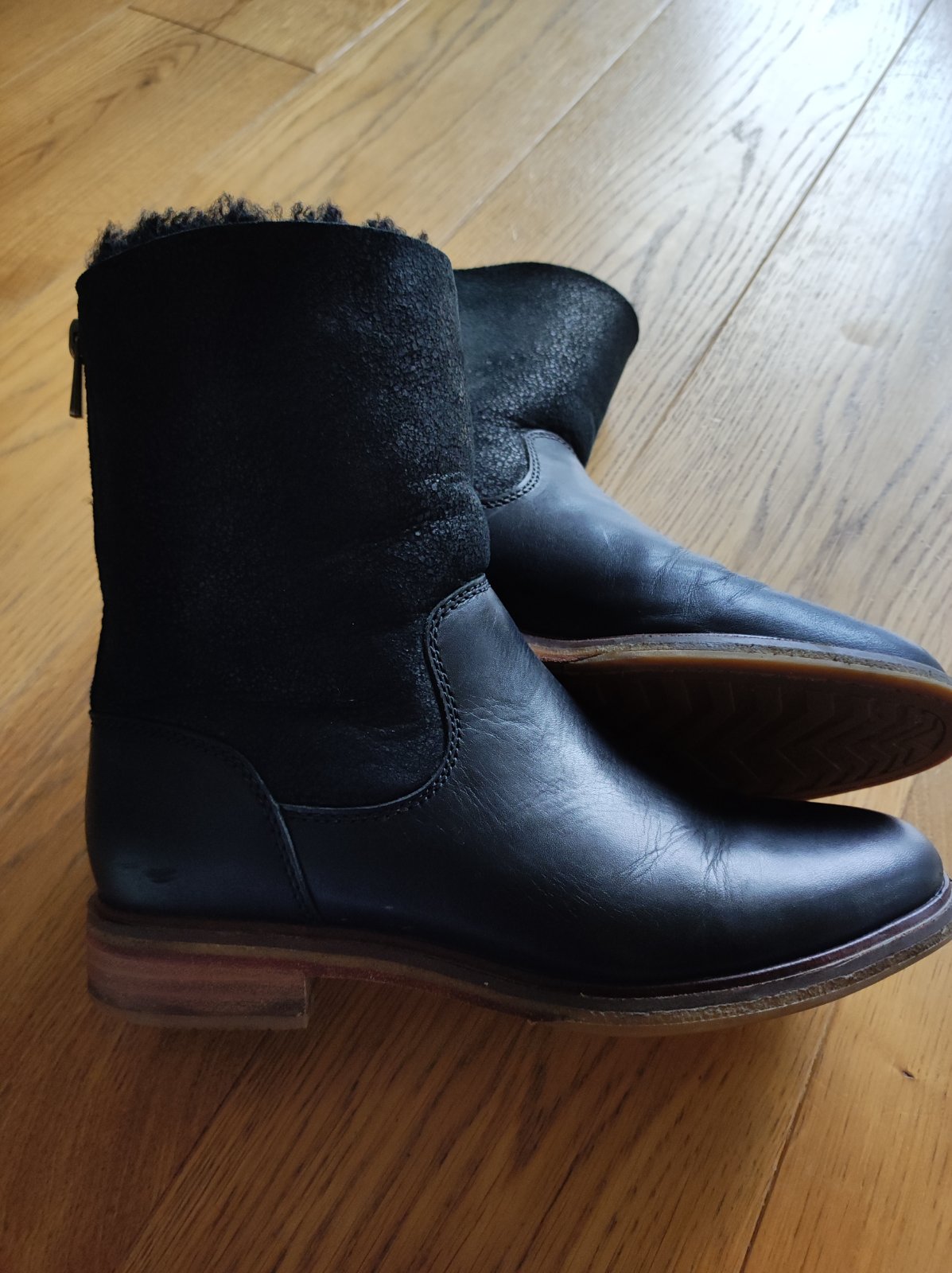 nadherne a velmi pohodlne cizmy,nie su velmi zateplene,skor na teplejsiu zimu alebo prechod,brusena koza,cast vzadu je elasticka cize sa krasne prisposobia nohe,nosene velmi velmi malo,sú v top sta...