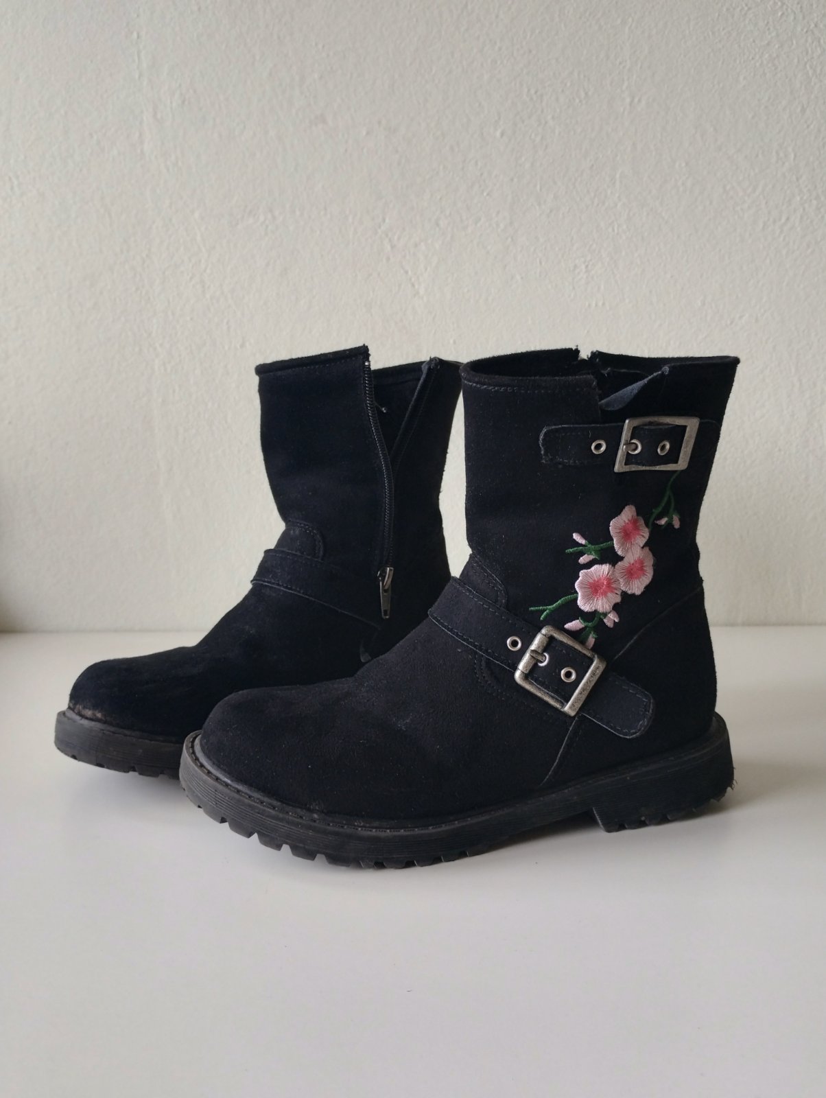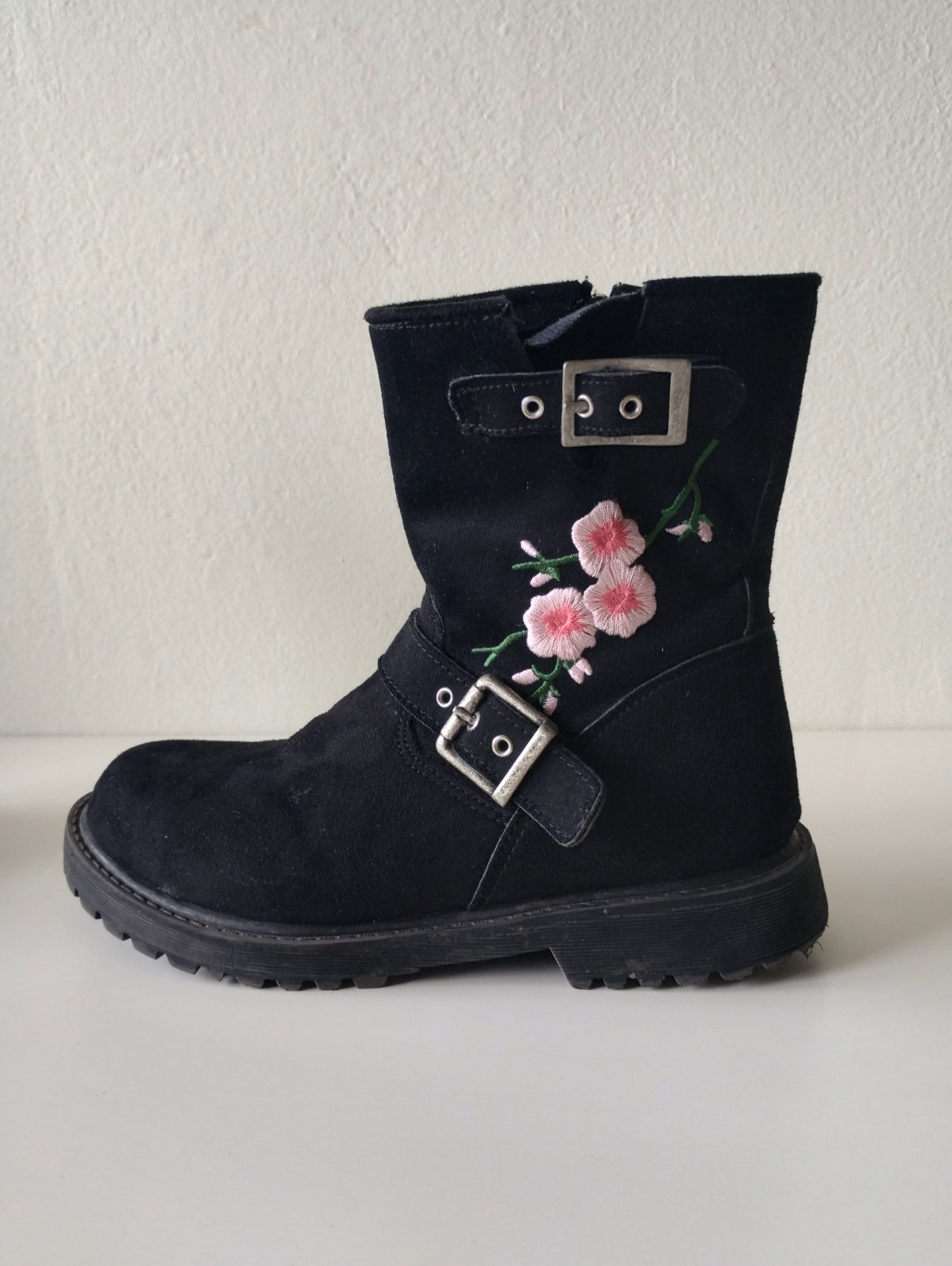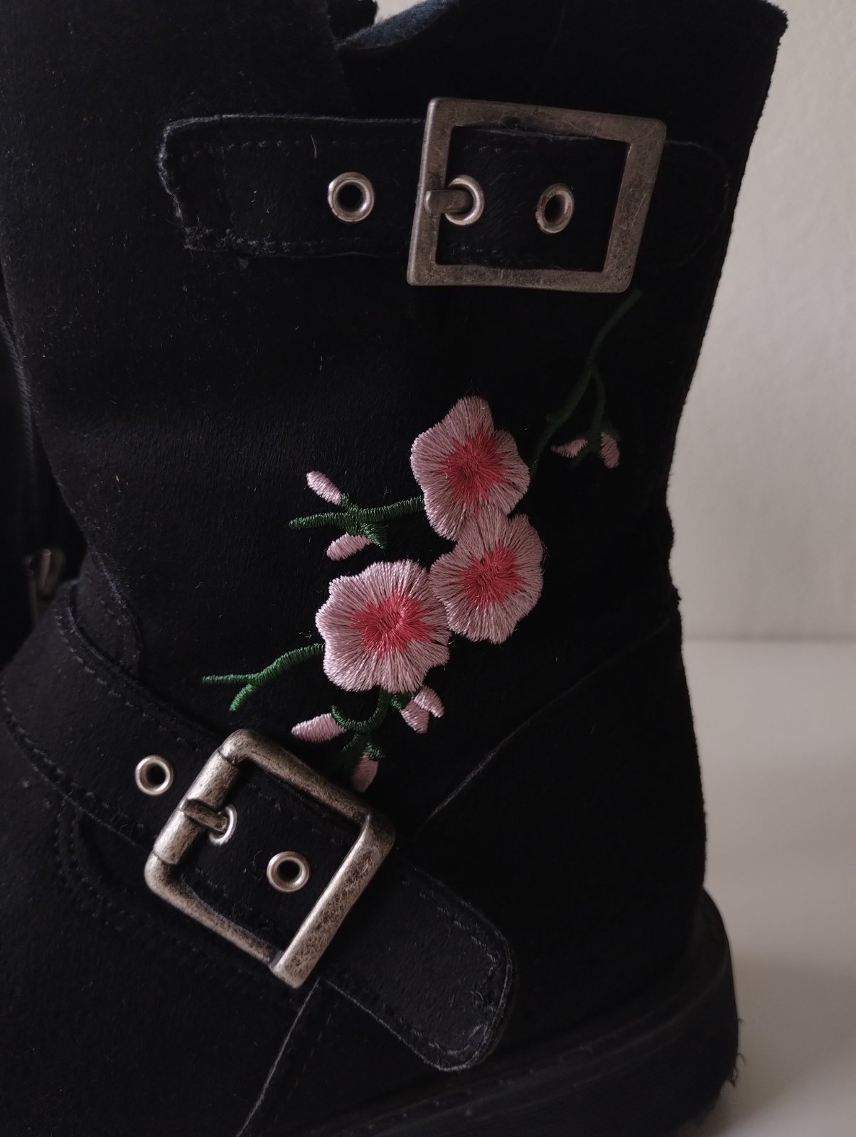 Pekné dievčenské čižmy s kvetinovou výšivkou, sú nosené ale stále vo veľmi dobrom stave, sú trošku ošúchané ale nie je to výrazne viditeľné