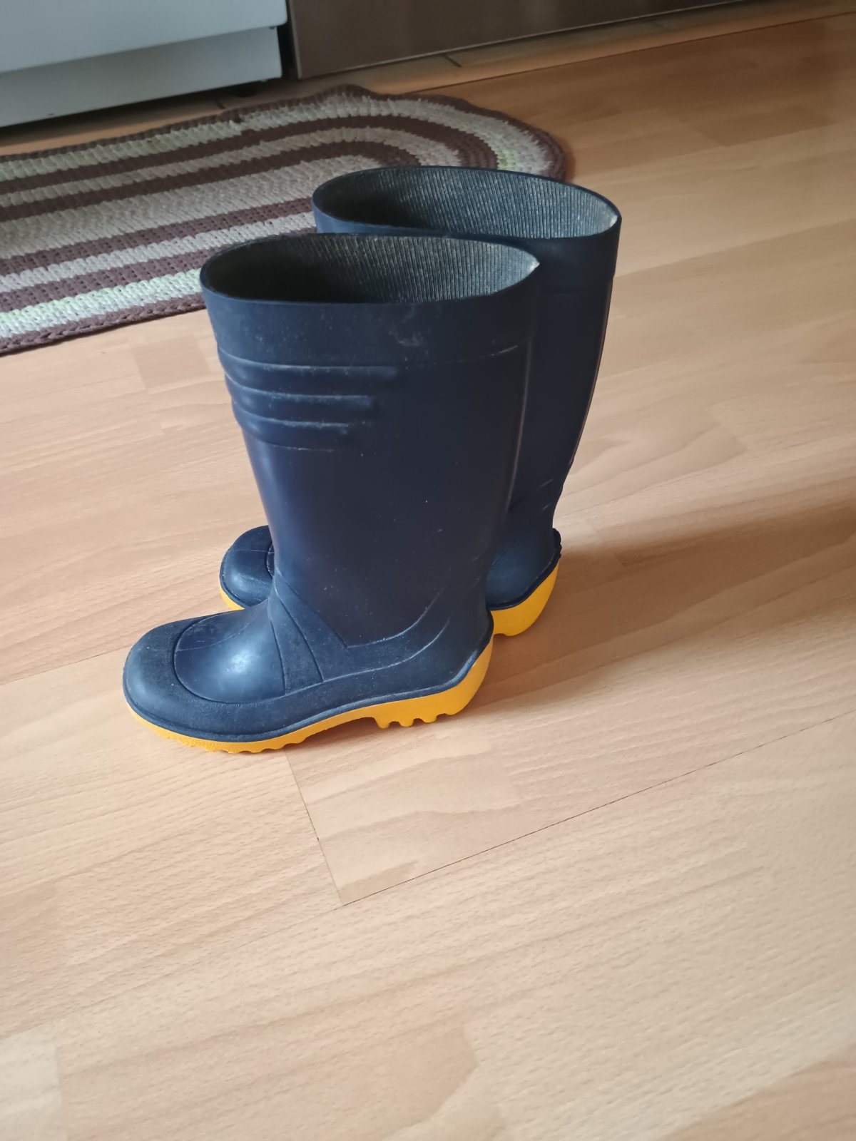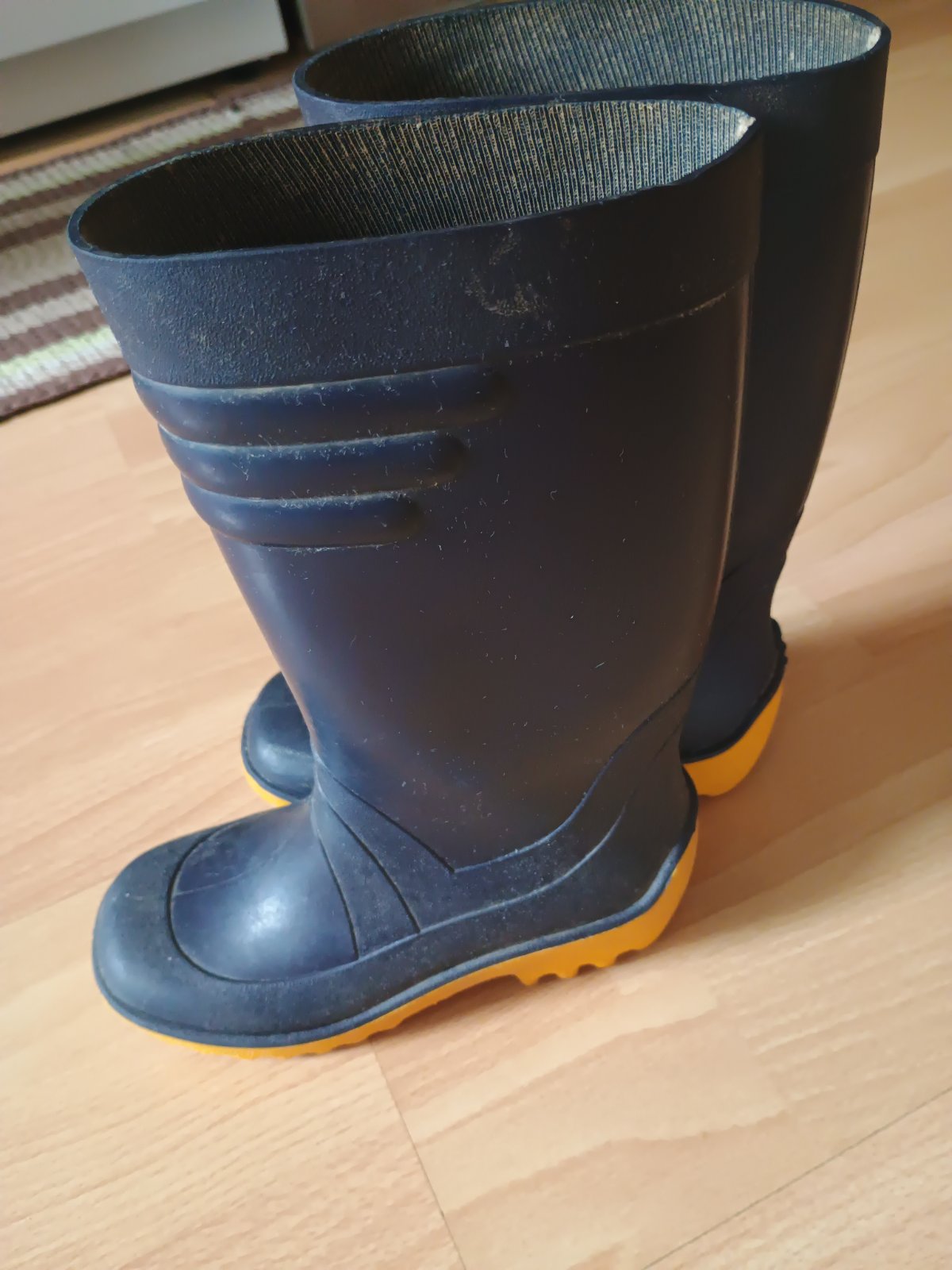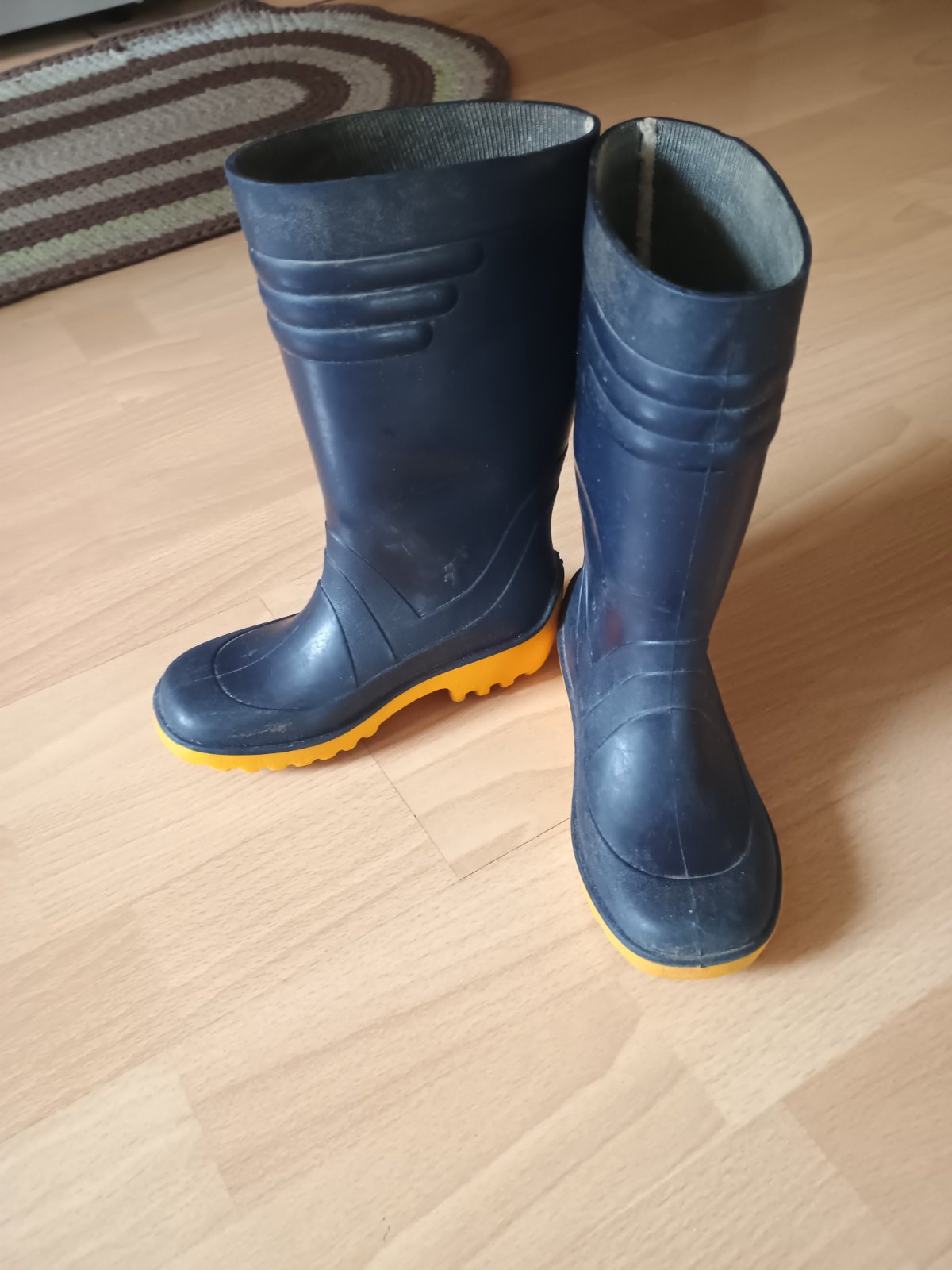 Nosene cizmy, nepremokaju, ale maju chybicky, jedna vlozka je roztrhnuta, da sa zasit. Vzadu su napisane synove inicialy. VD vlozky 17 cm. Velkost 26/27. Vsetko nafotene