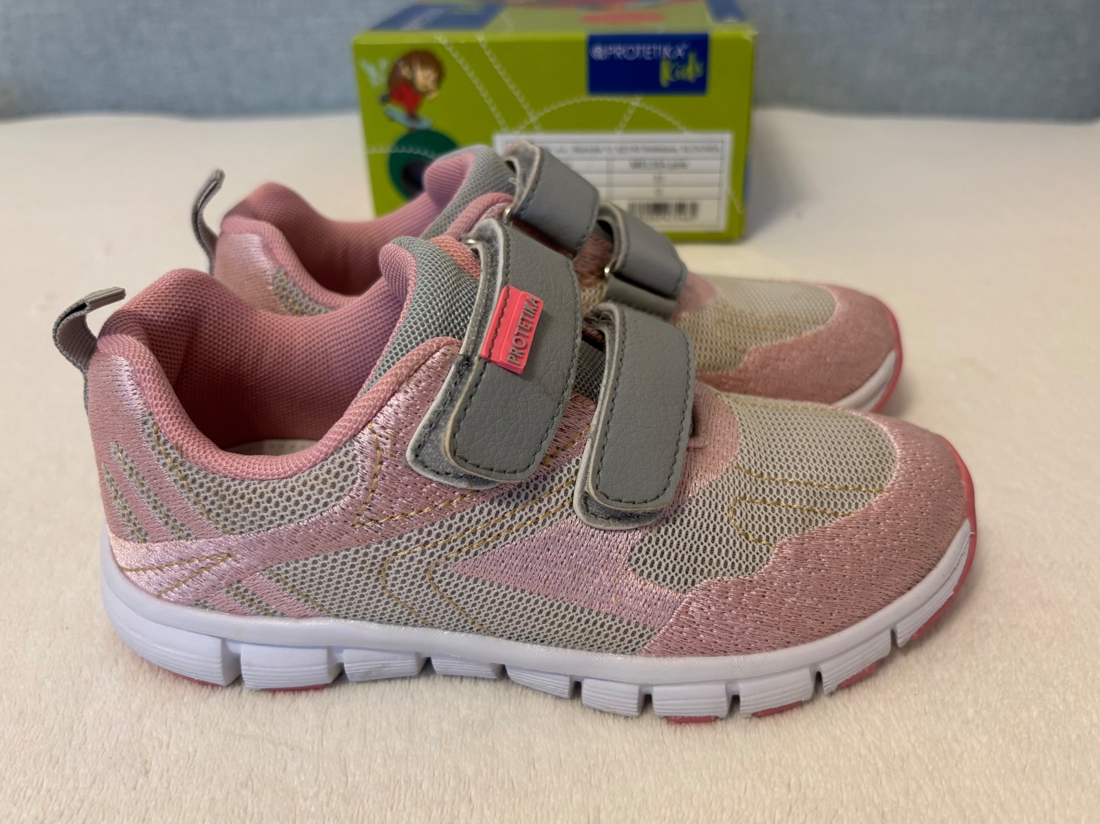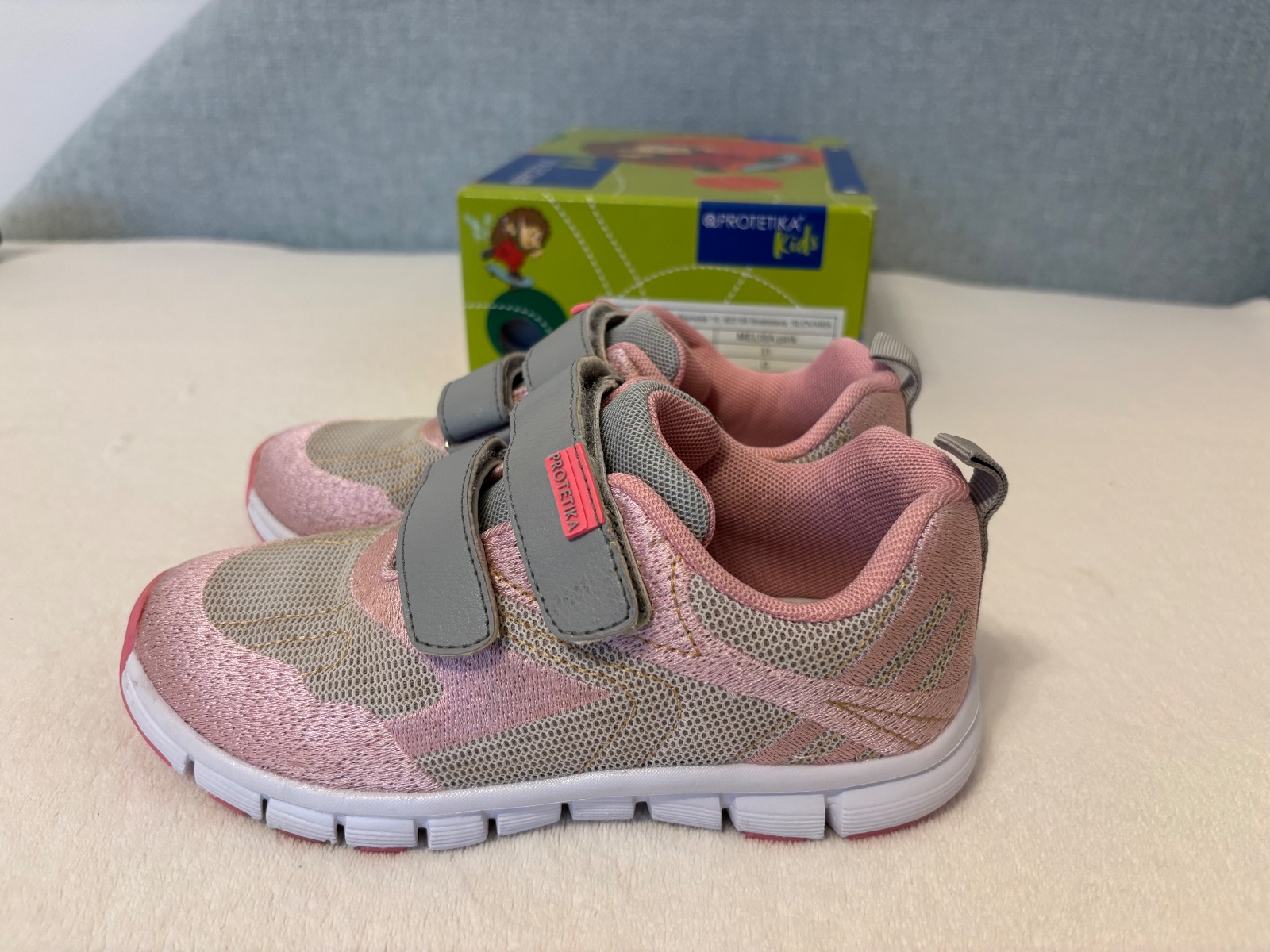 Ponúkam 3x obuté tenisky Protetika, farba trblietavá ružová a sivá. Žiadne nedostatky som nenašla. Suché zipsy držia výborne.