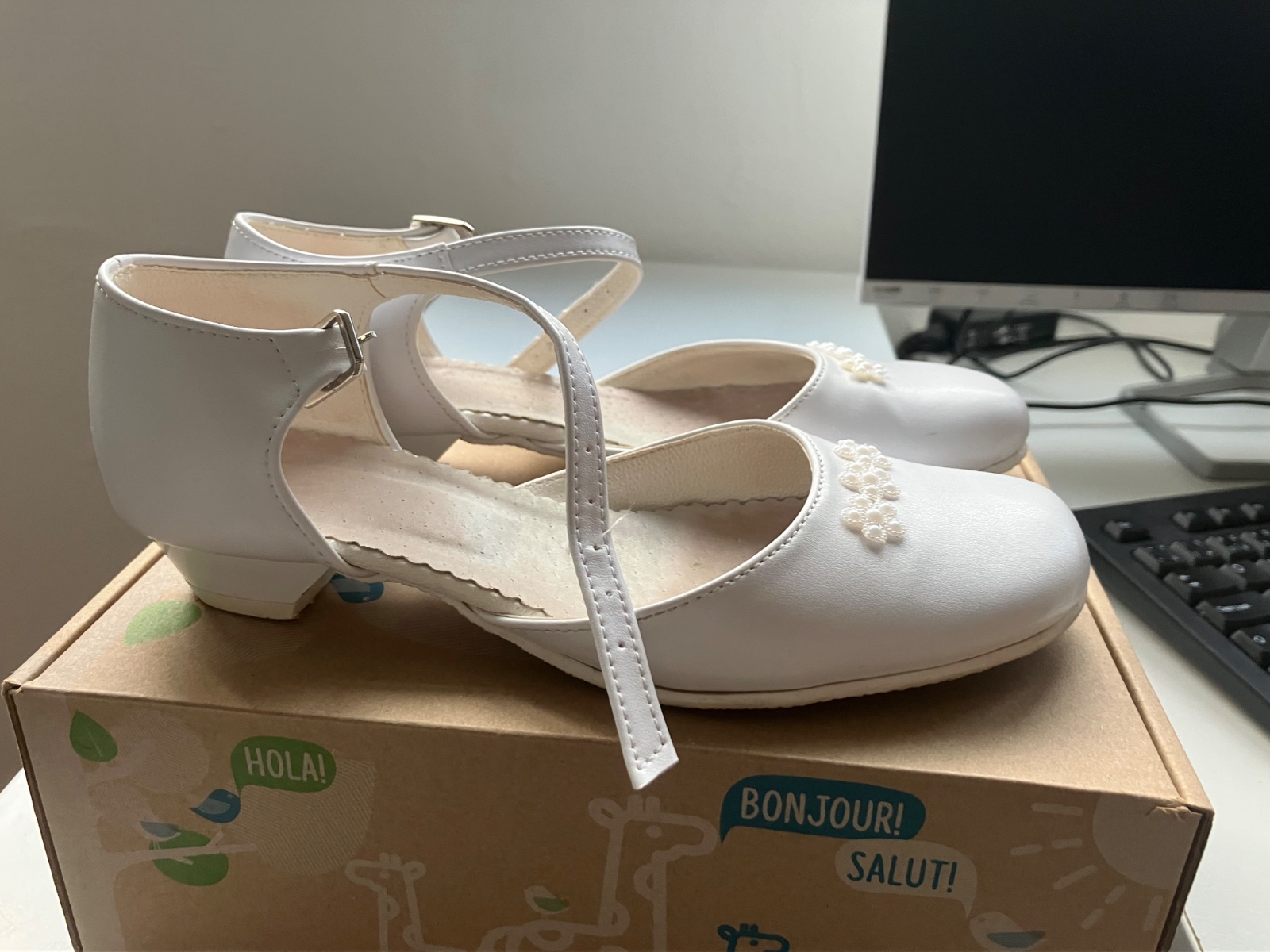 Sandalky na 1. sv. prijimanie. Obute 2krat. Nekozene. Vnutorna dlzka 21 cm.
