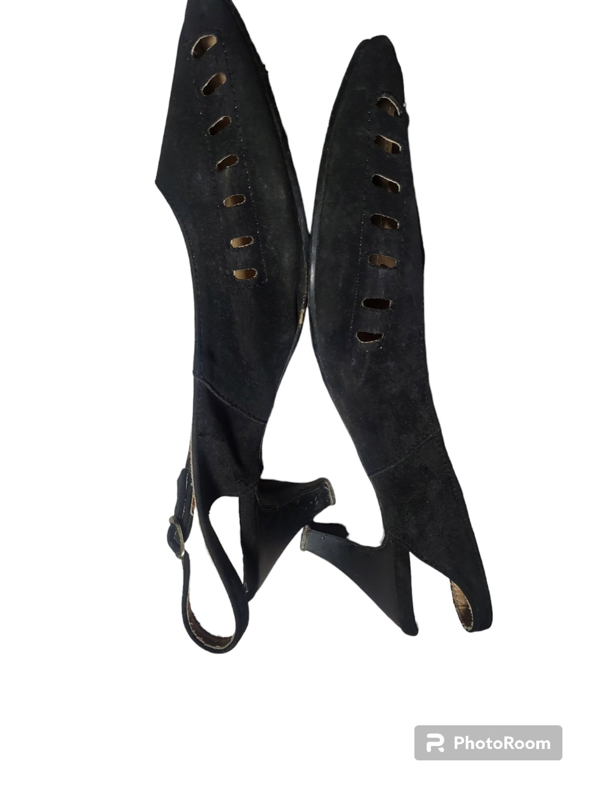 Málo nosene sandále, pekný stav, 26cm vnútorná dĺžka. Majú malu chybičku, stratil sa kovový držiak na zapínani na pravej nohe. Dá sa zobrať z iných starých sandalov. Ja ten držiak nemám odkiaľ vzia...