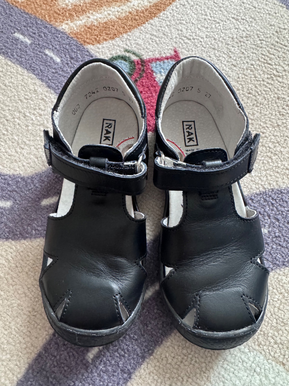 Nové sandálky. Veľkosť píšu 18/27 (cm/číslo). VD je cca 16cm, ideálne na nôžku 15,5cm. PC 28,90e
