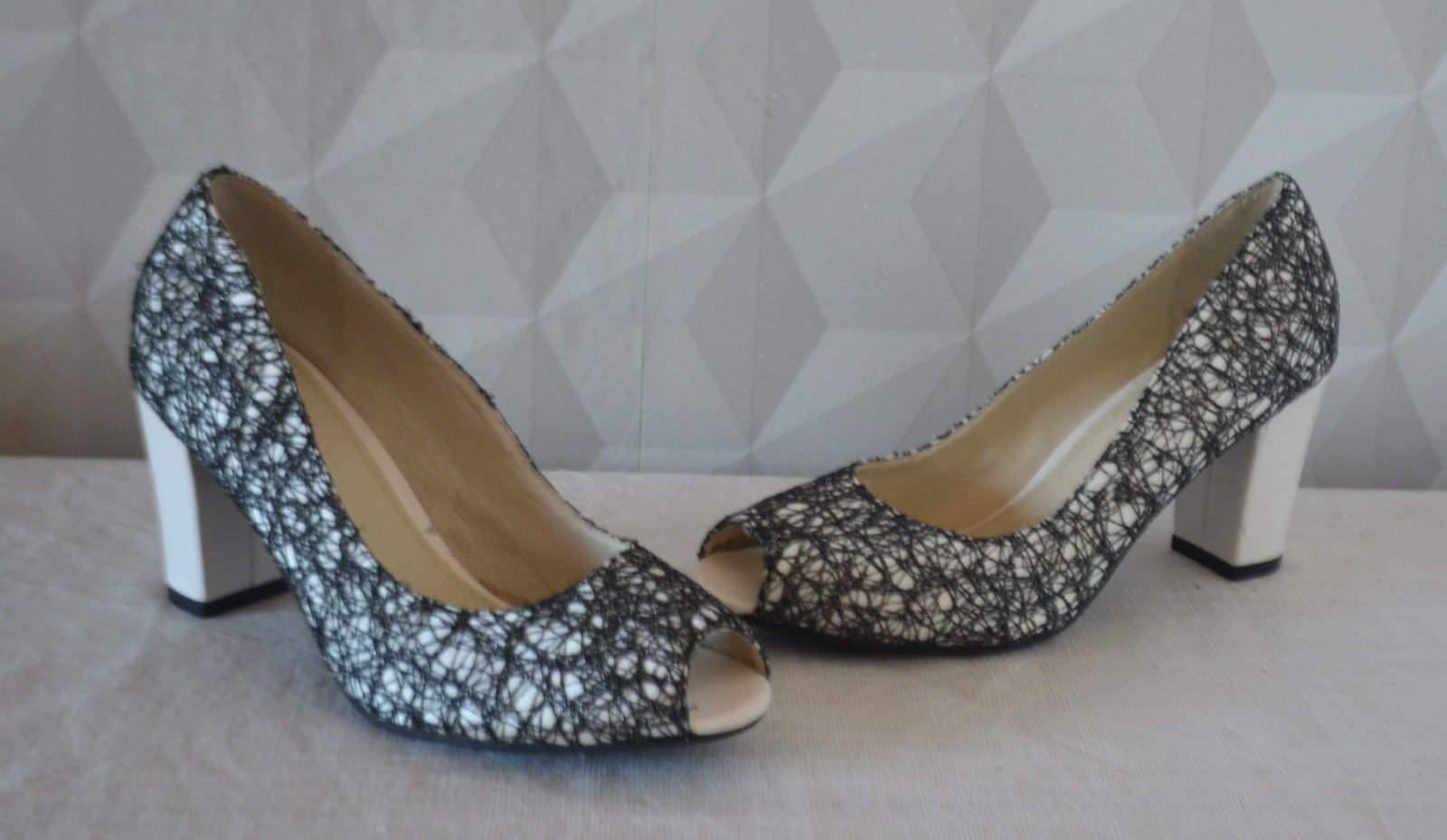 Topánky nosené, na opätkoch pár škrabančekov ako vidíte na fotkách, ináč veľmi dobrý stav.