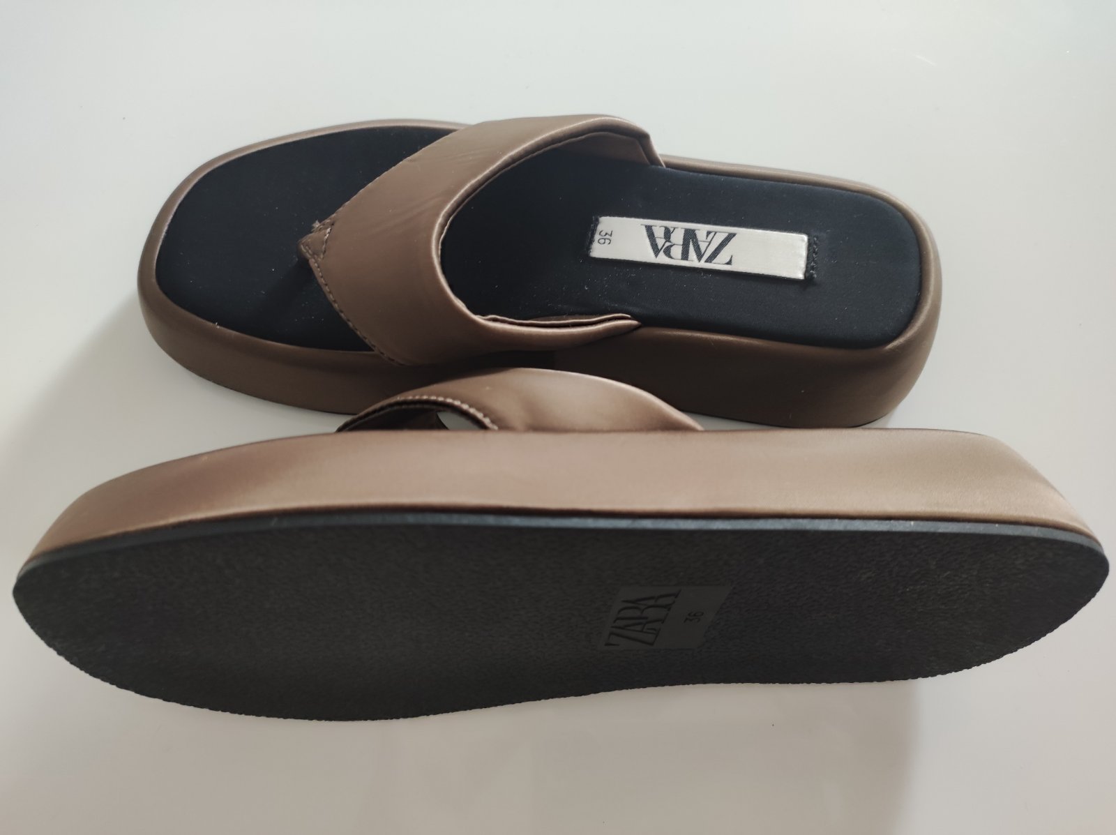 Predam krasne topanky znacky Zara, nosene parkat, ziadne znamky nosenia. Na jednej topanky vpredu vidno malicku "skvrnku", vidno aj na fotkach.