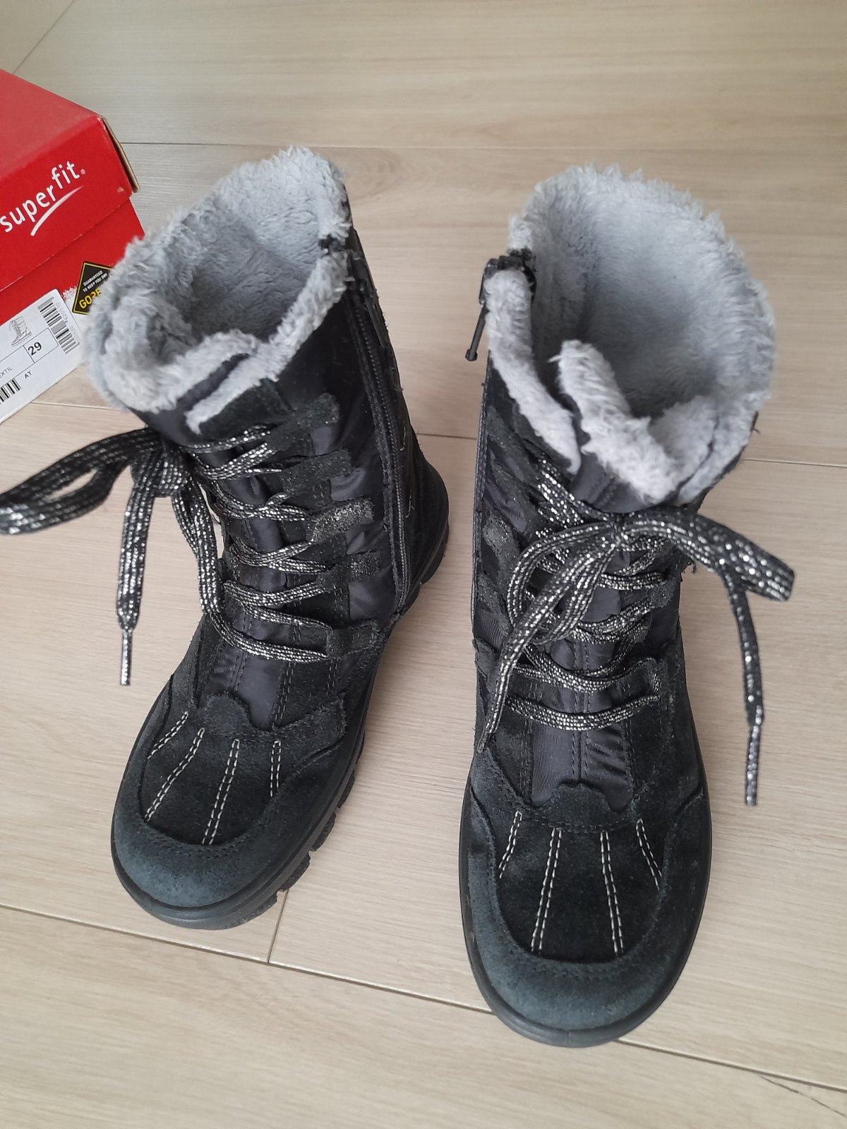 Nosené príležitostne, bez poškodenia, gore tex, vhodné na užšiu nozku, vnútorný rozmer vid tabuľka výrobcu pri danom modeli. Kupovali sme nové v predajni Žirafa