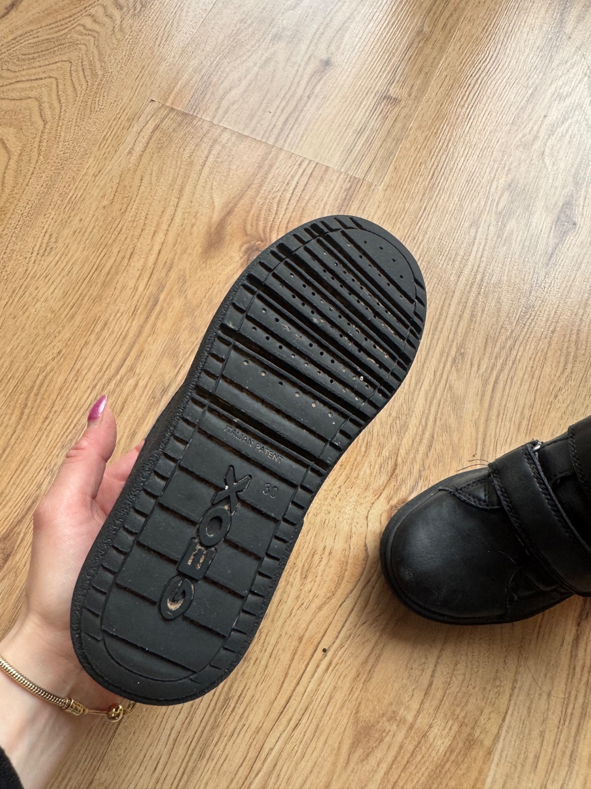 Paradne cizmicky geox nosene na striedacku s dalsimi dvomi, su ako nove, len vrch je material sustak, leskly imidzovy efekt, ktory sa trosku supe. Absolutne neprekaza v noseni.