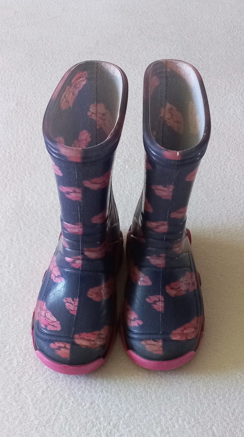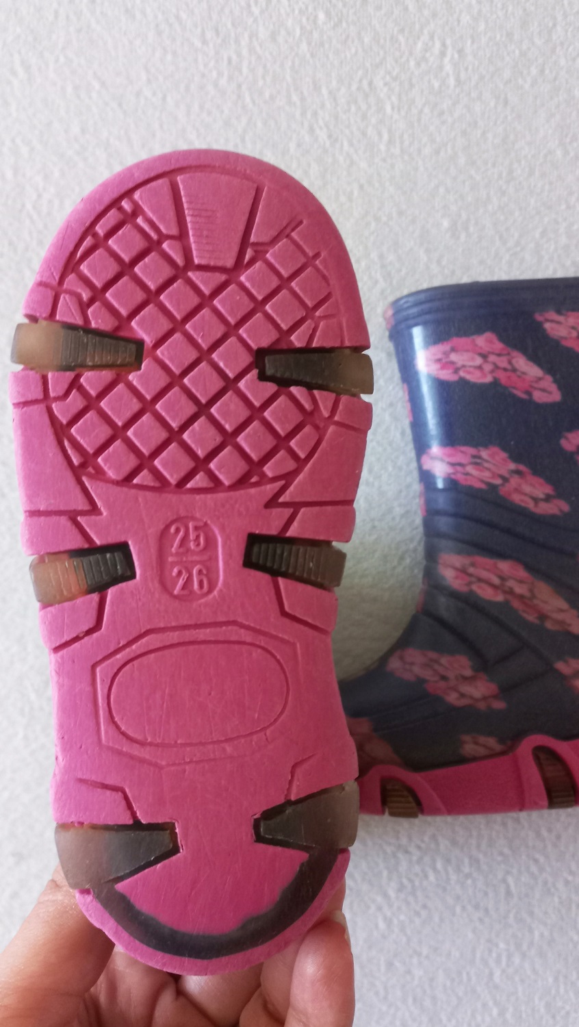Modro-ružové gumové čižmy, nosené, nepoškodené. Vnútorná dĺžka cca 15,5 cm, veľkosť písaná 25/26. Máme viacero detských vecí, môžete si zostaviť vlastný balíček. Pri kúpe viac vecí zľava.