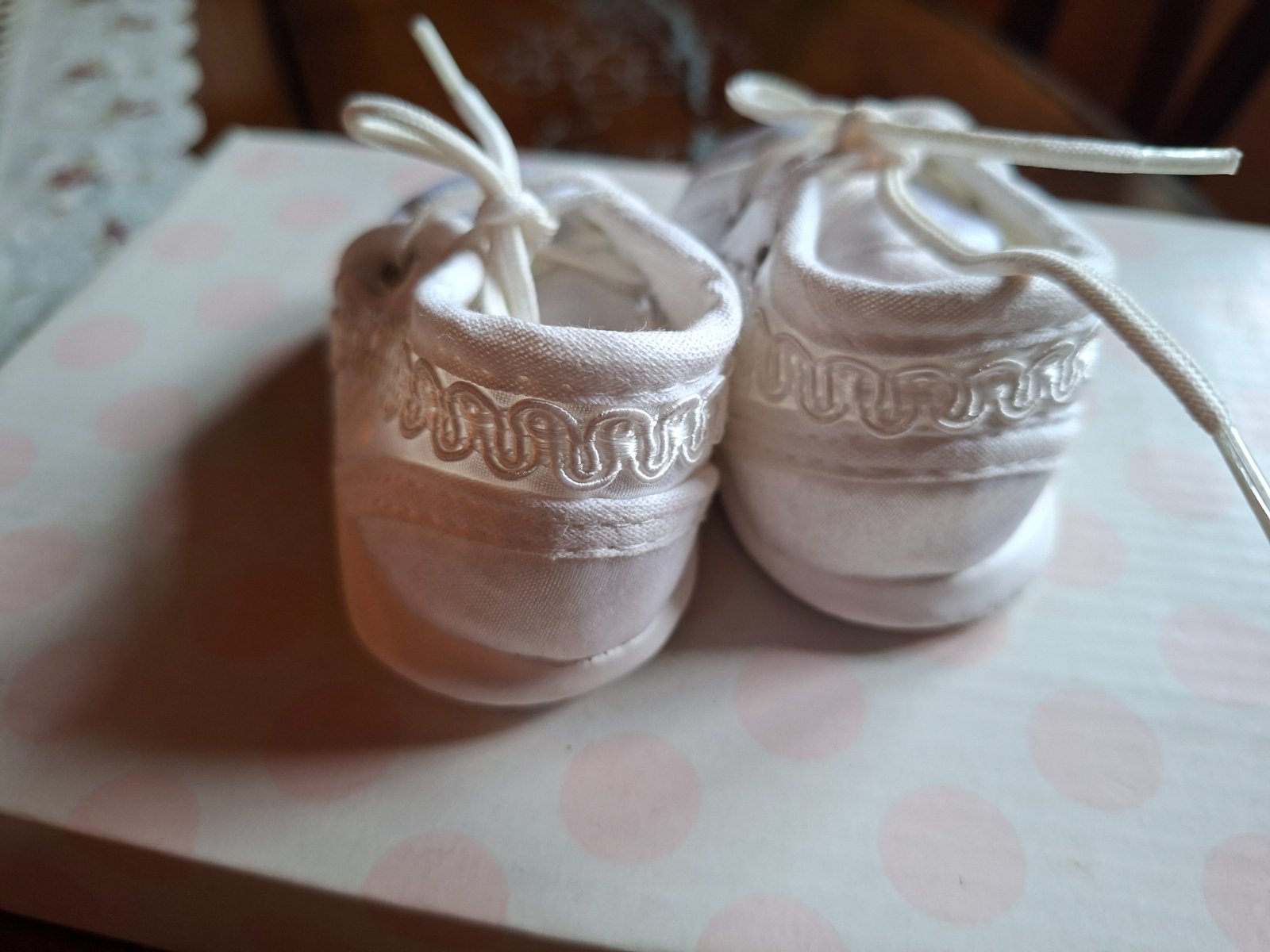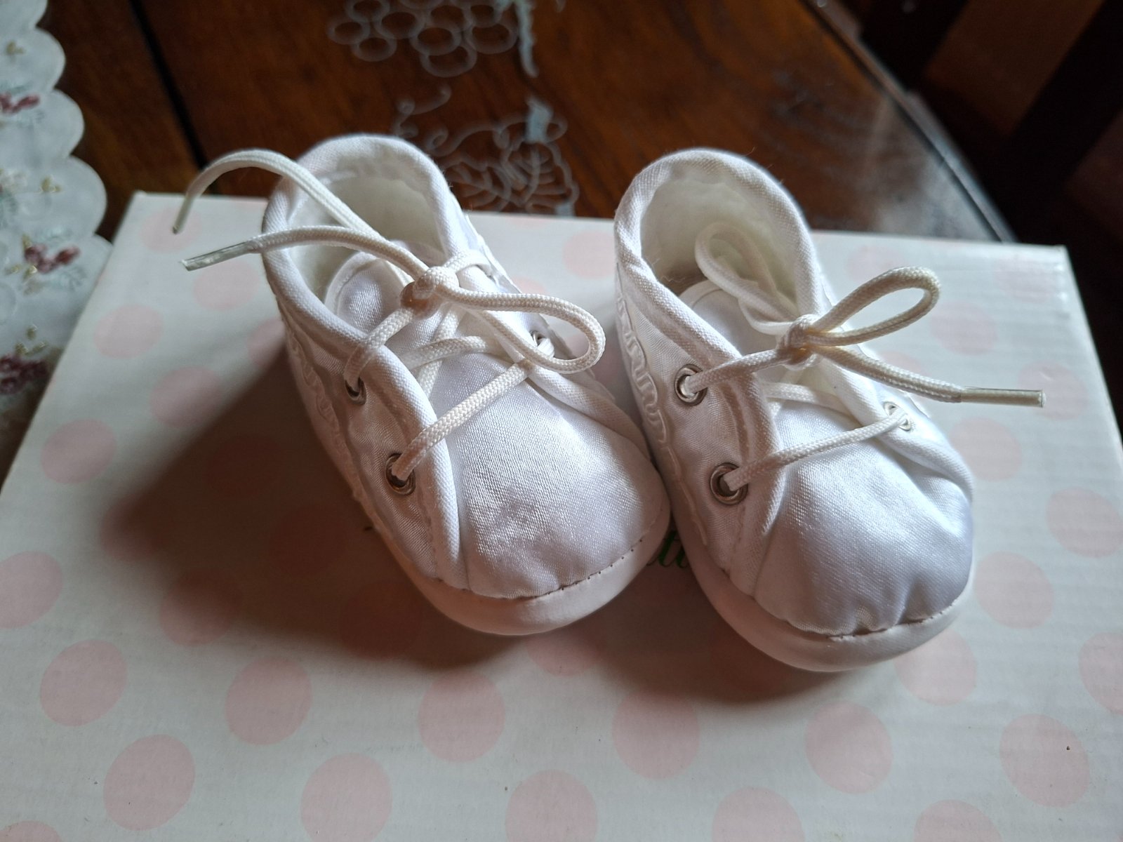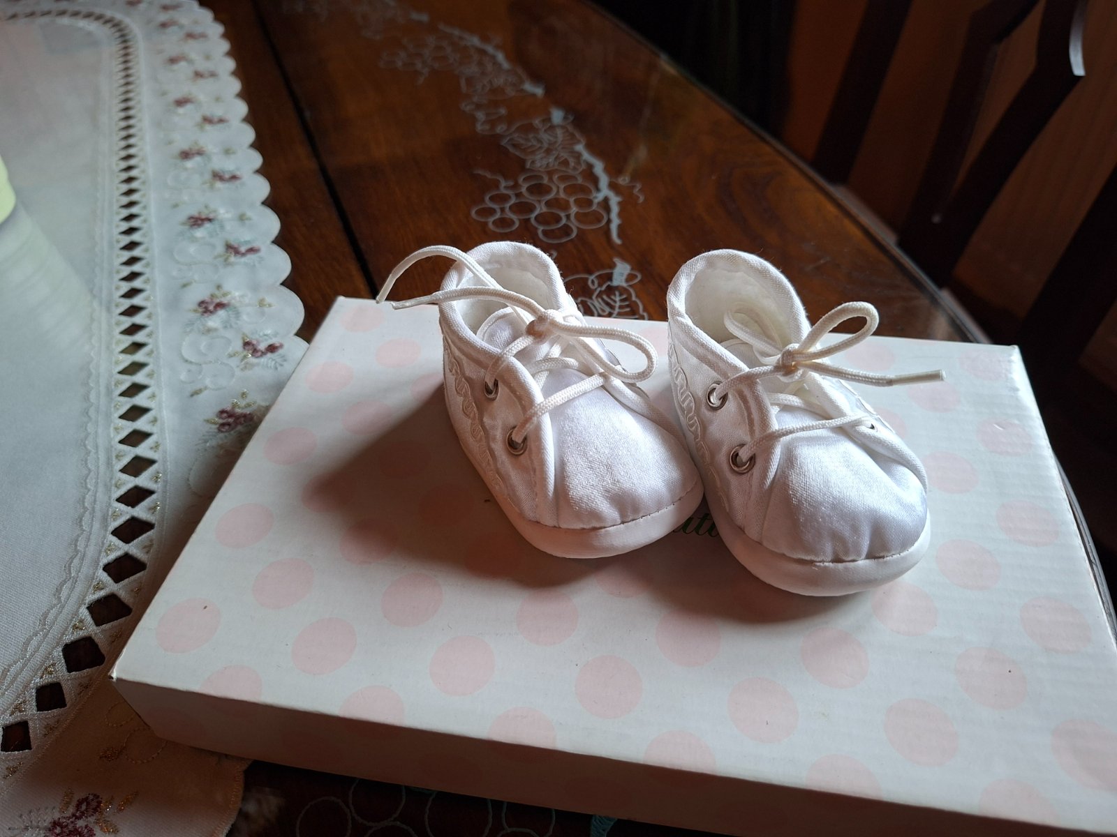 Detské topánočky na krst Mia Roztomilé detské slávnostné capačky na krst alebo len tak.. Aby naše deti vyzerali nádherne.. Dĺžka podrážky - 9 cm (0-2 mesiace), 10 cm (0-3 mesiace), 11 (3-6 mesia...