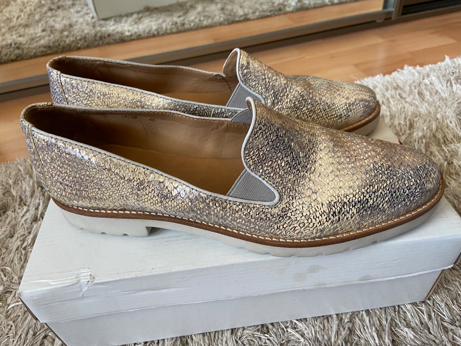 Velmi dobry stav, pohodlne, zlata so striebornou, vnutorna dlzka 27cm