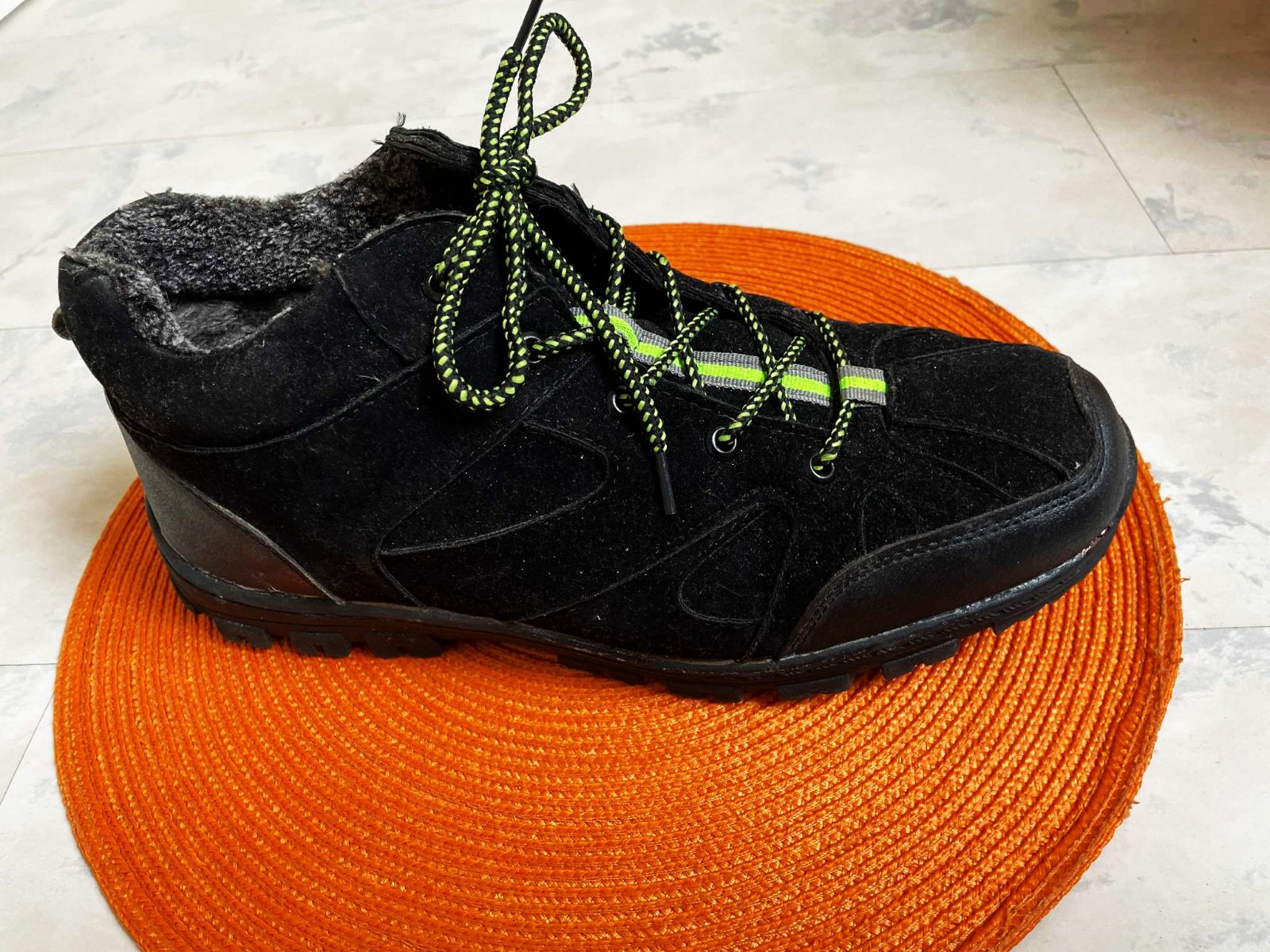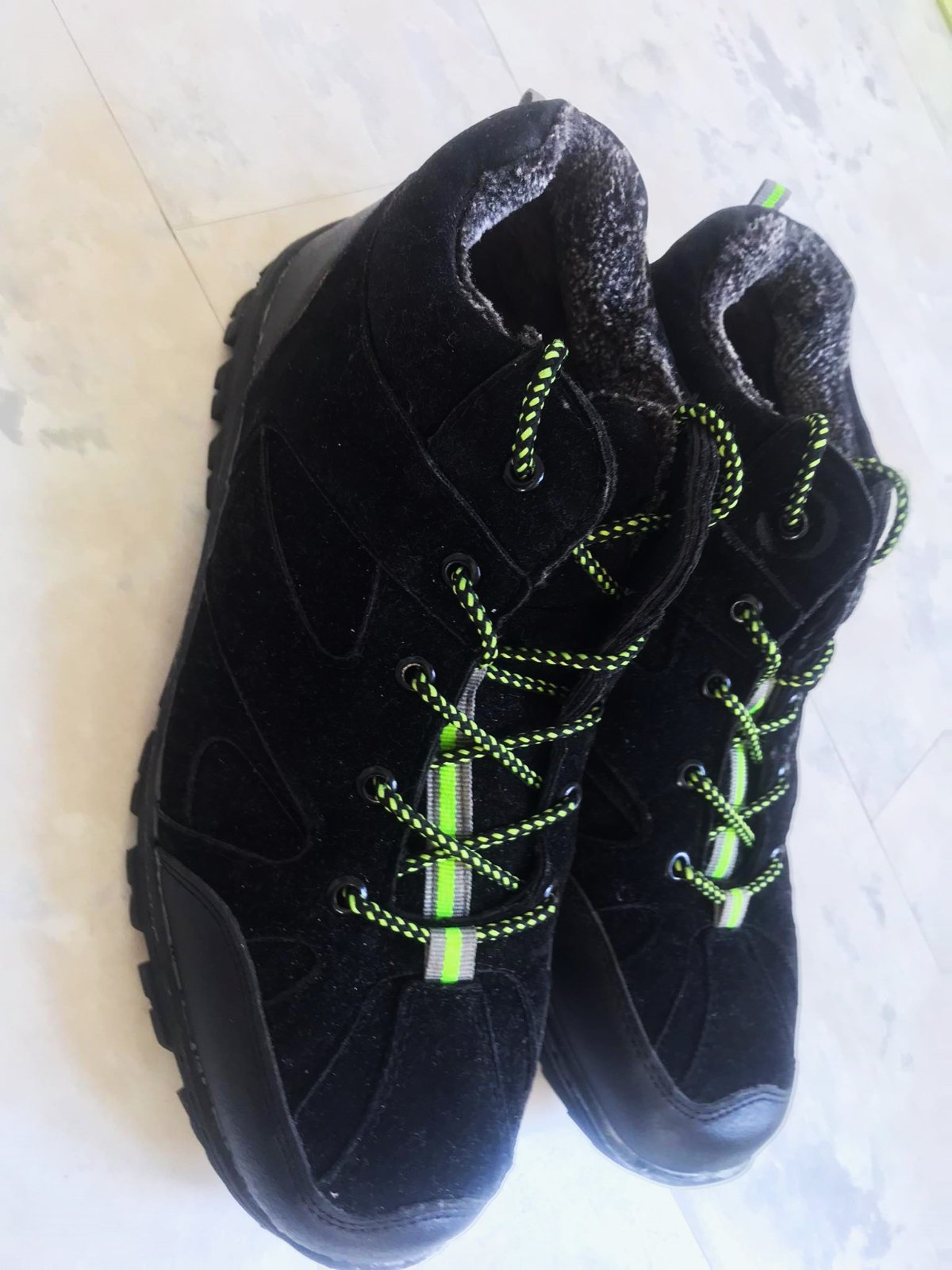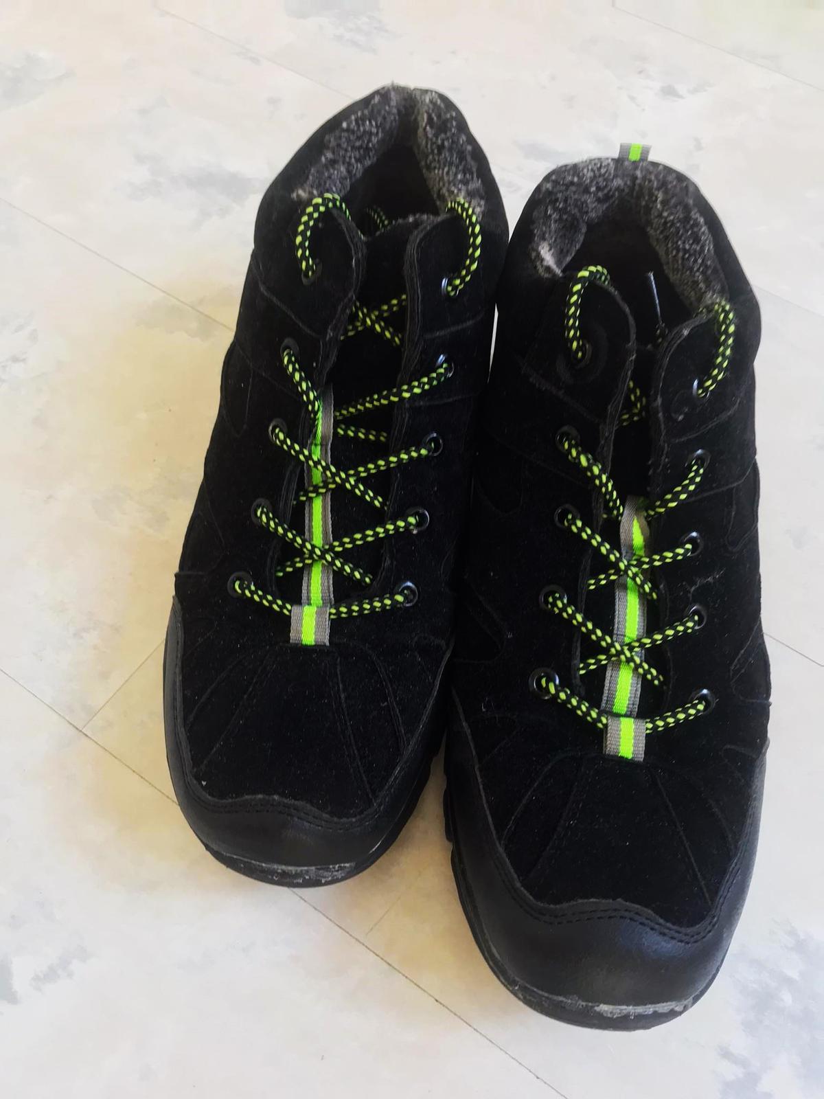 kvalitné športové husto zateplené športové topánky / kotníkové botasky na zimu, absolútne neschodené, dnu celé vystlané hustou teplou kožušinkou, s vysokou protišmykovou podrážkou a s reflexnými prvkami, vn. dlžka - meraná vnútorná vložka = 28 cm,povrchový mteriál - impregnovný umelý semiš - vyzerá to ako nubuková brúsená koža