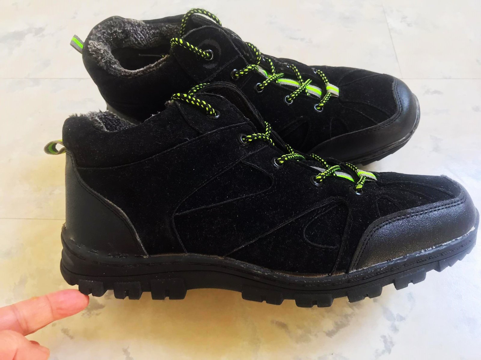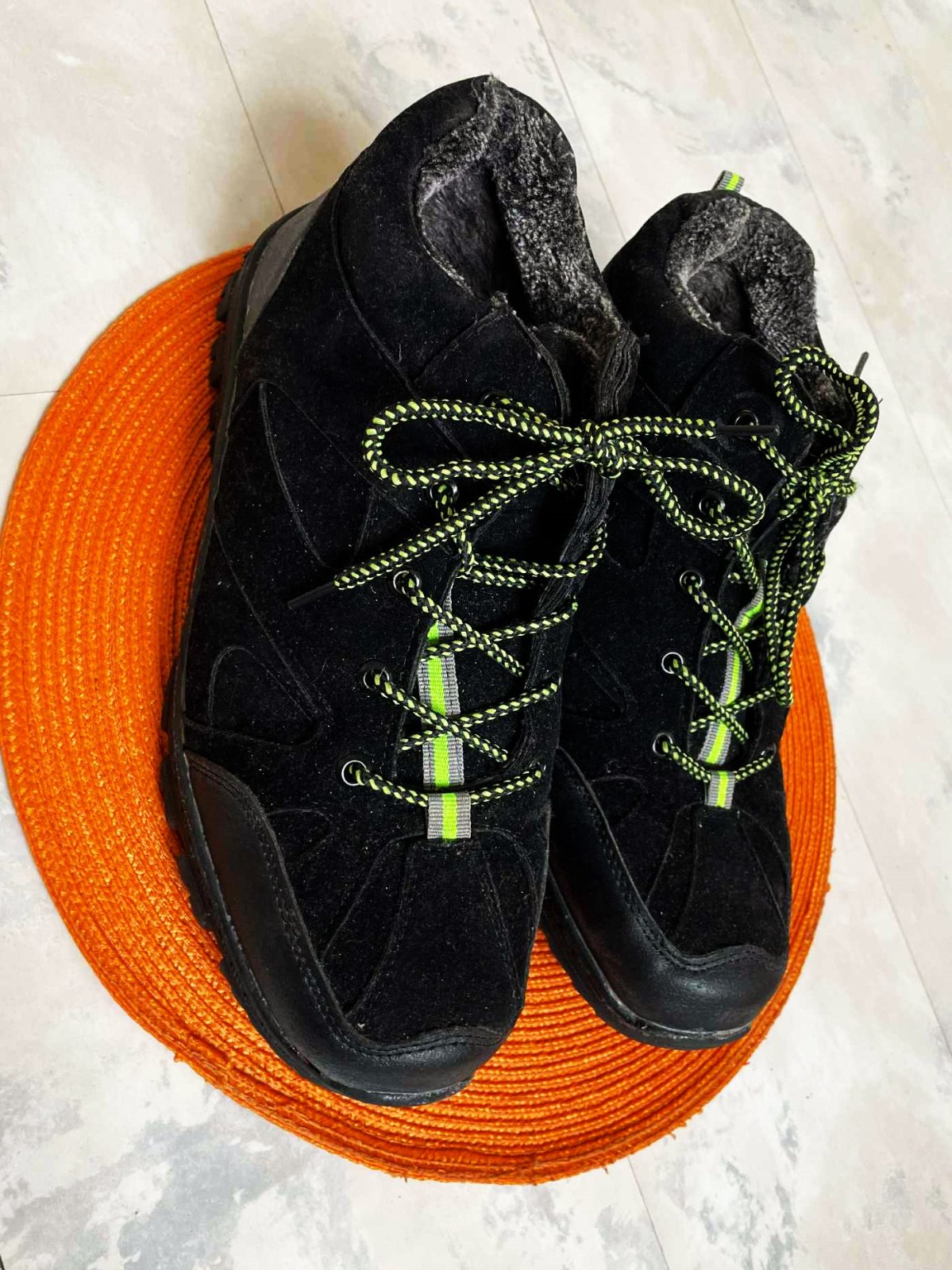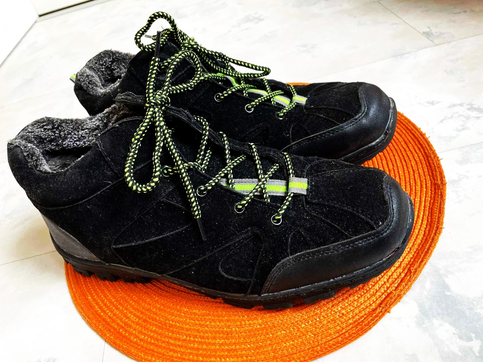kvalitné športové husto zateplené športové topánky / kotníkové botasky na zimu, absolútne neschodené, dnu celé vystlané hustou teplou kožušinkou, s vysokou protišmykovou podrážkou a s reflexnými prvkami, vn. dlžka - meraná vnútorná vložka = 28 cm,povrchový mteriál - impregnovný umelý semiš - vyzerá to ako nubuková brúsená koža