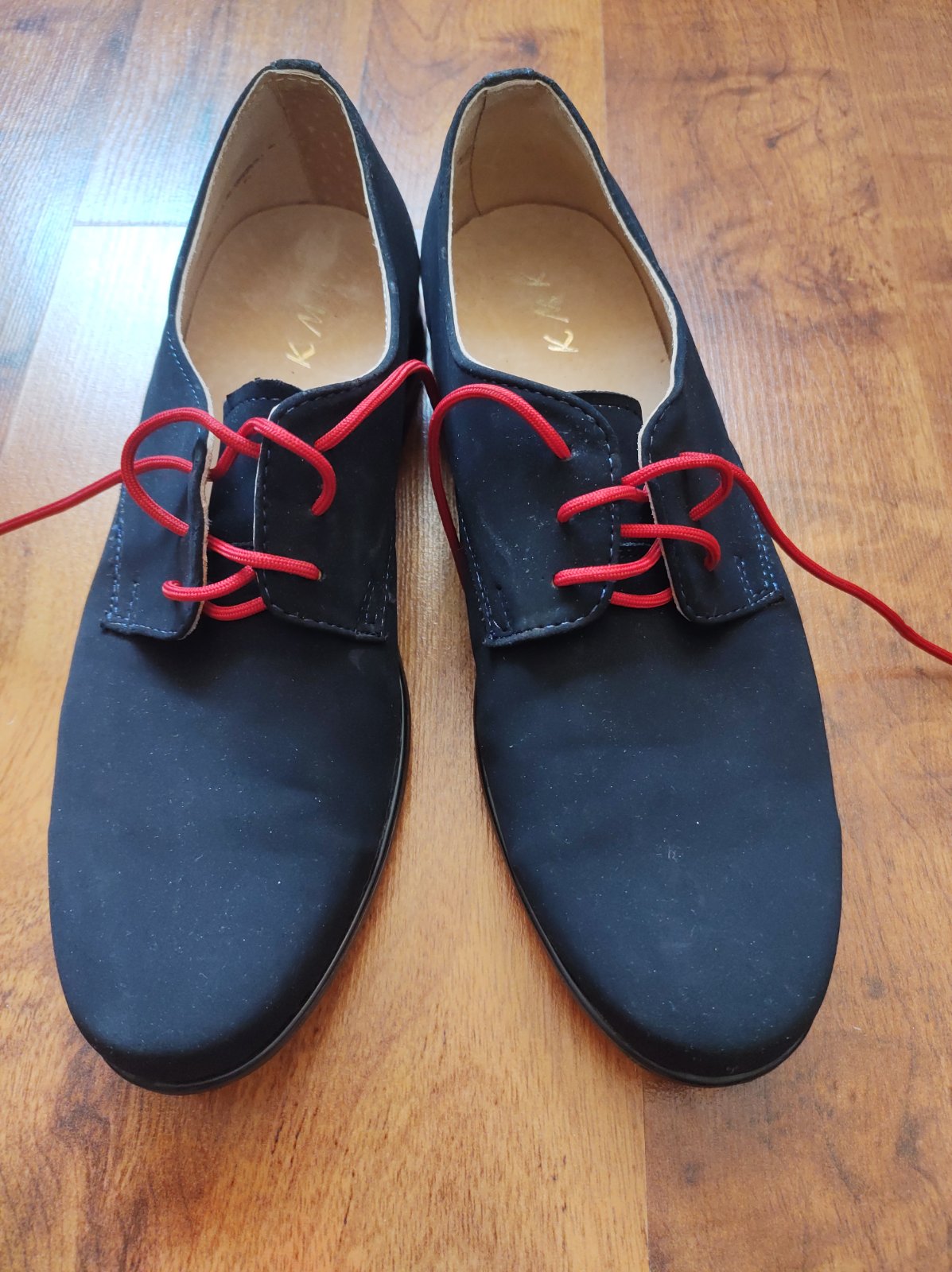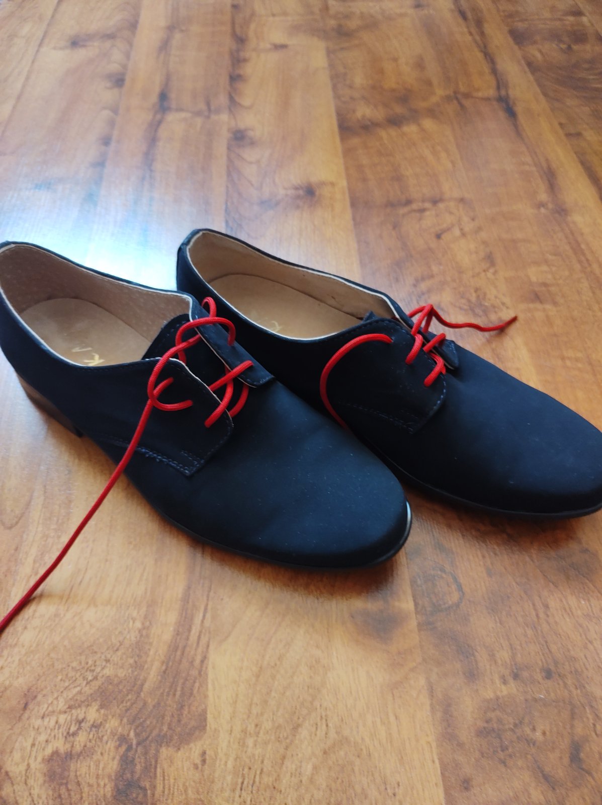2x obuté, tmavomodré topánky, vrch taká imitácia semišu. Ideálne skúšať