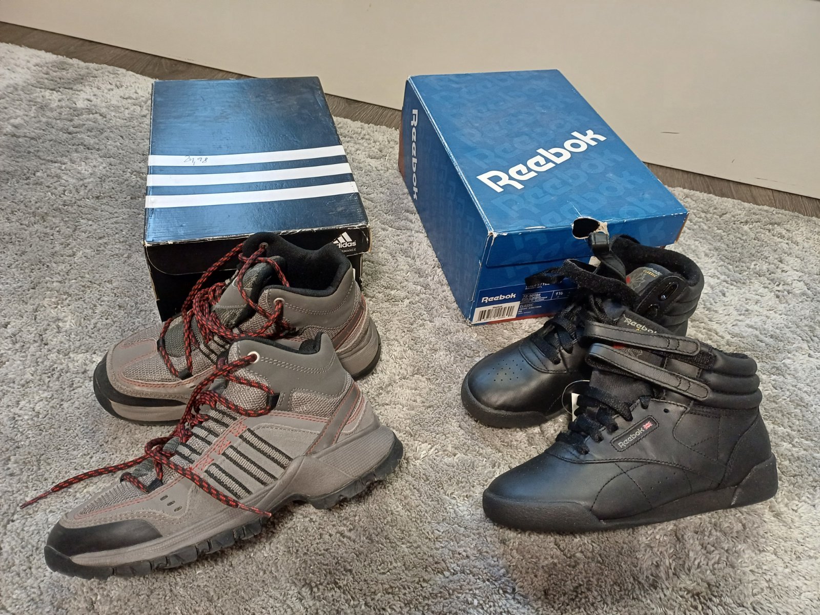 Nosené dokopy 20h v interiéri, super stav akurát logo adidas na jputku na jazyku sčuchané Ideálne na indoorové hry, ako napr.basketbal, tým, že je spevnený aj kotník Veľkosť 32 PC 54.99 Farebný o...