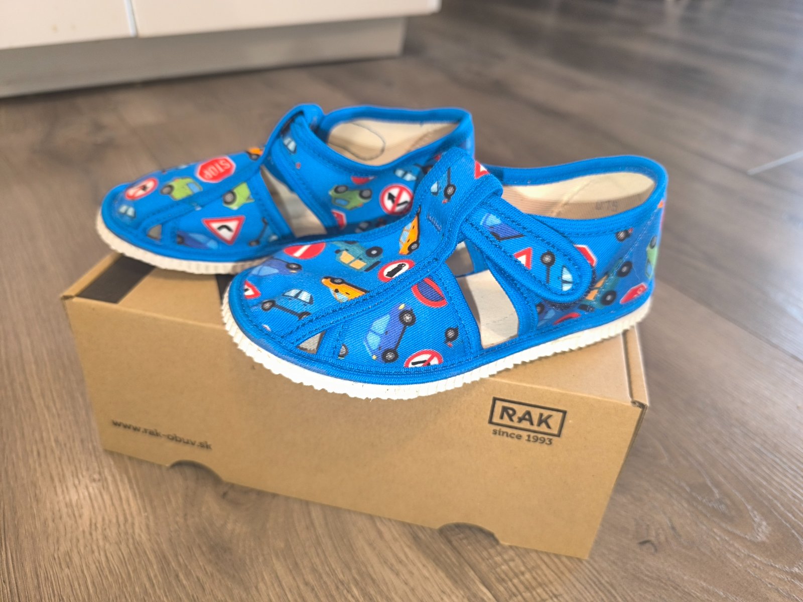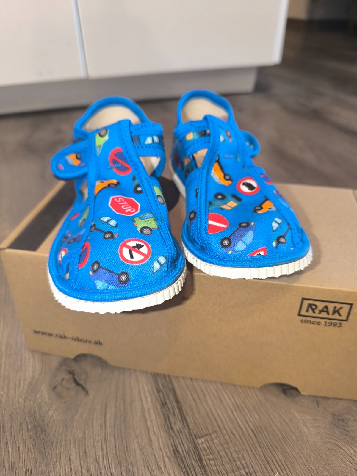 Nové papučky s visačkou v pôvodnej krabici. Veľkosť 27. VD 18cm. Motív autá. Pôvodná cena 25€. V ponuke mám aj papučky 28.