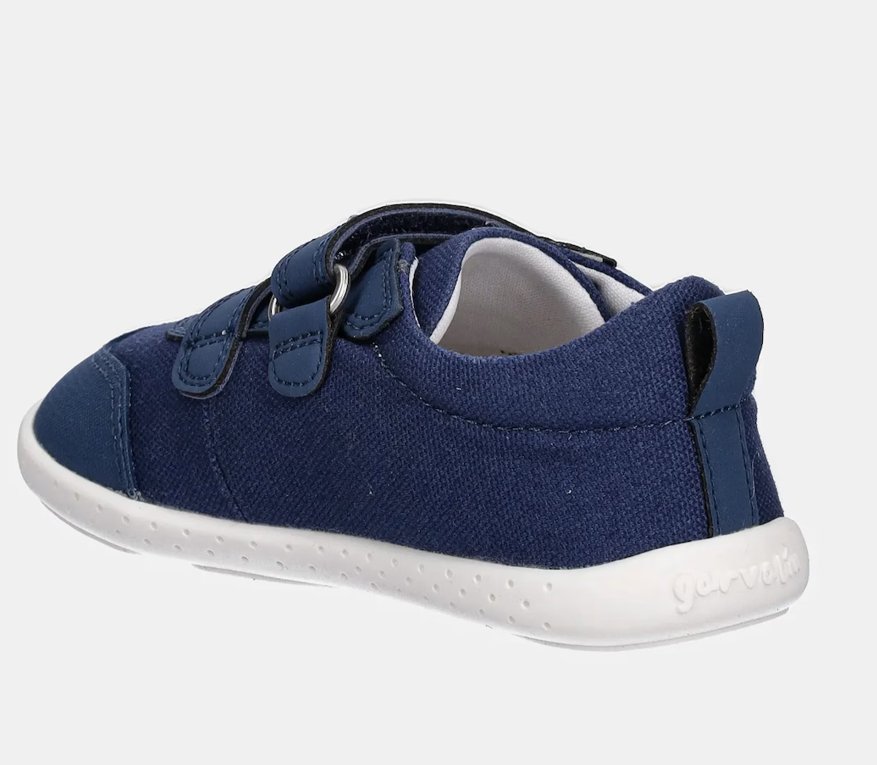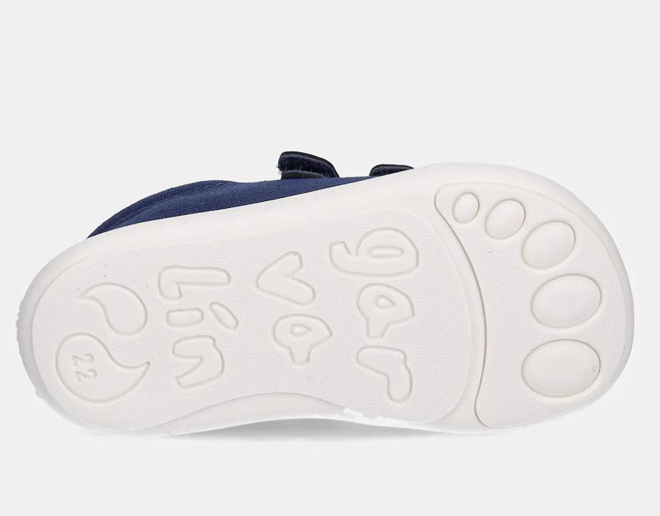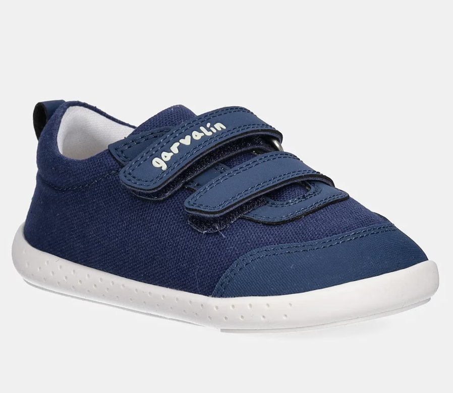 Textilné barefoot topánky s pogumovaným okopom a koženými detailmi.
