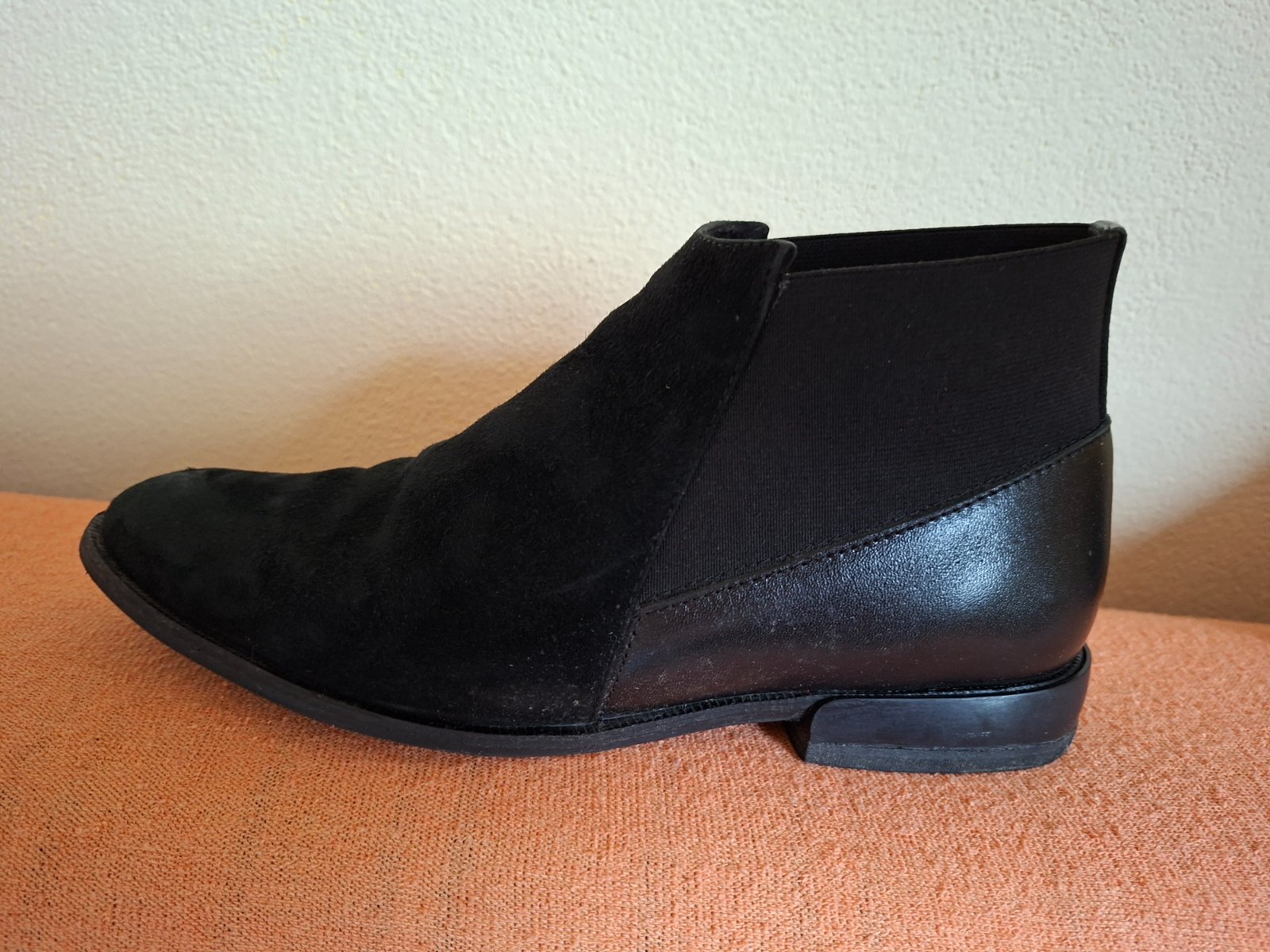 Predám nosené kotníkové našuchovacie topánky, veľkosť je uvedená 36, ale sú väčšie, preto uvádzam veľkosť 37. Podpätky su vymenené za nové.
