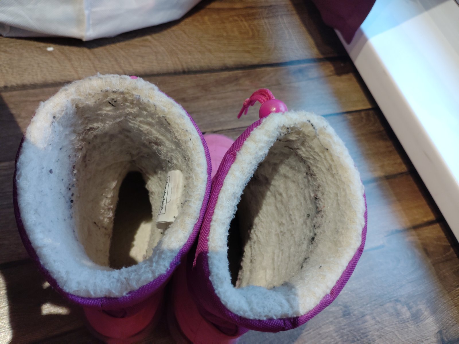 Ponúkam nosene zimné čižmičky. Suché zipsy držia. V predu málinko okopane ale myslím že na doma stále super :) Teraz som si všimla (kuk foto) jedna topánočka vpredu vyzerá že sa ide odlepiť ta šp...