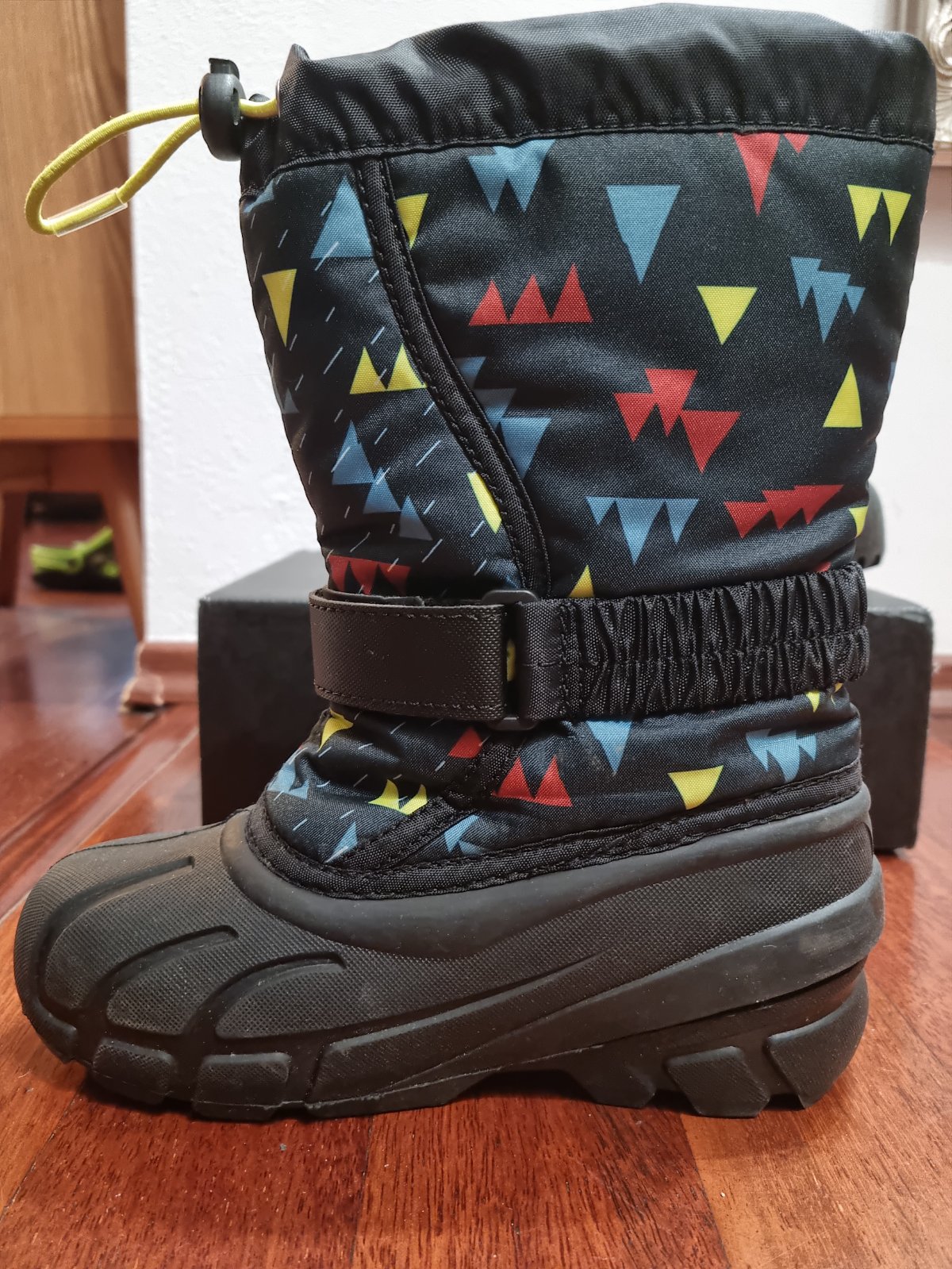 Kvalitné teplé nepremokavé snehule Sorel. Veľ. 31. Ako nové. Kupované nové ak sa dobre pamätám na eobuv.sk. Flisová vložka. Zapínanie slip-on, sucý zips + zaťahovanie šnúrkou. Viac podrobných info určite vyhľadáte na nete.