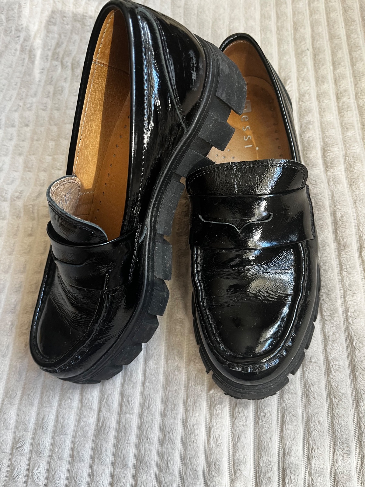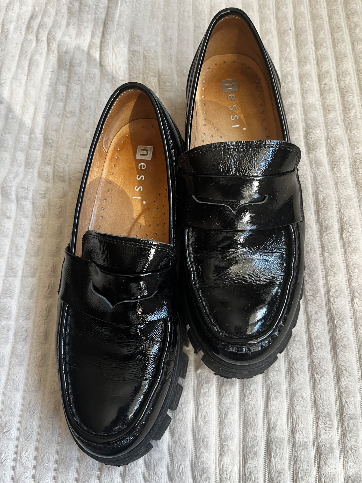 Lodičky vhodné možno pre staršiu dámu. Mamina ich využila len príležitostne, sú na užšiu nohu. Výška opätku 8 cm.