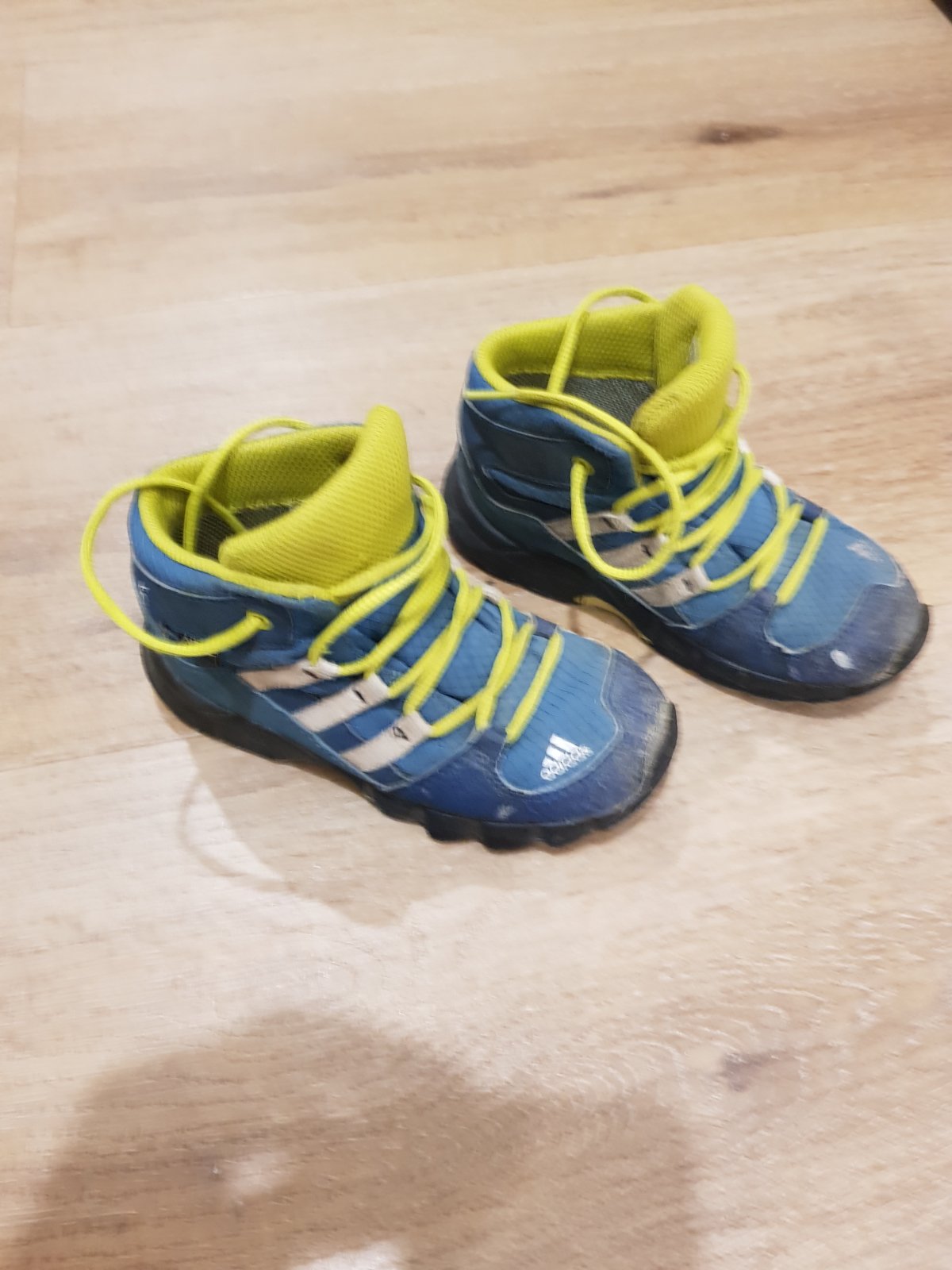 Ponúkam topanky adidas terrex vo veľmi dobrom stave si myslím, vel. 26. Podrážka je bez poškodenia, len predok bol šuchnutý, ale ten som pekne zatrela čiernym krémom na topánky.