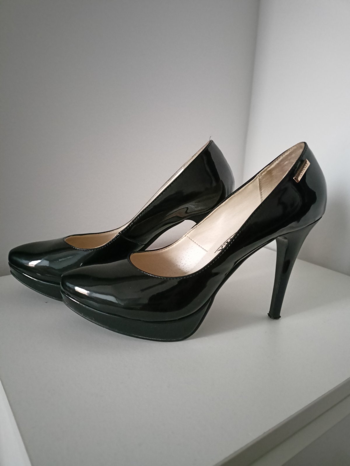 ako nove, len trosku opotrebovane opatky (v pripade zaujmu pozriem, ci nemam aj nahradne), vyska opatku 10,5cm, vyska platformy 2 cm, bezne nosim 38, dobre sa v nich chodilo, vdaka platforme necitit, ze su take vysoke, mozete aj vratit, ak nesadnu, ale na vlastne naklady, moje chodidlo na papieri ma 24,5 cm