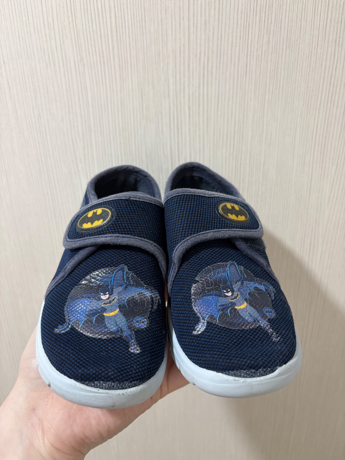 Dobrý stav! Detské papuče, chlapčenské, so vzorom, vpredu na gumičku. Vnútorná dĺžka:16,5cm,vonkajšia dĺžka:18cm. (2808)