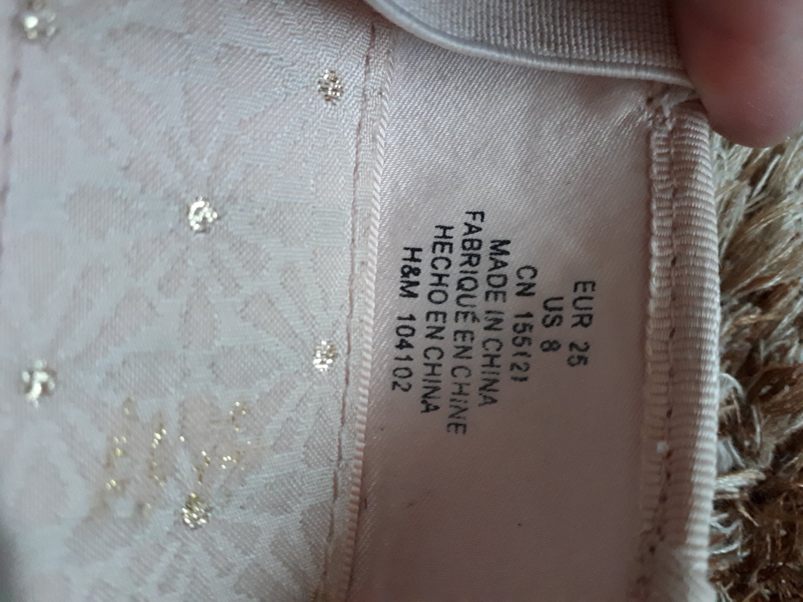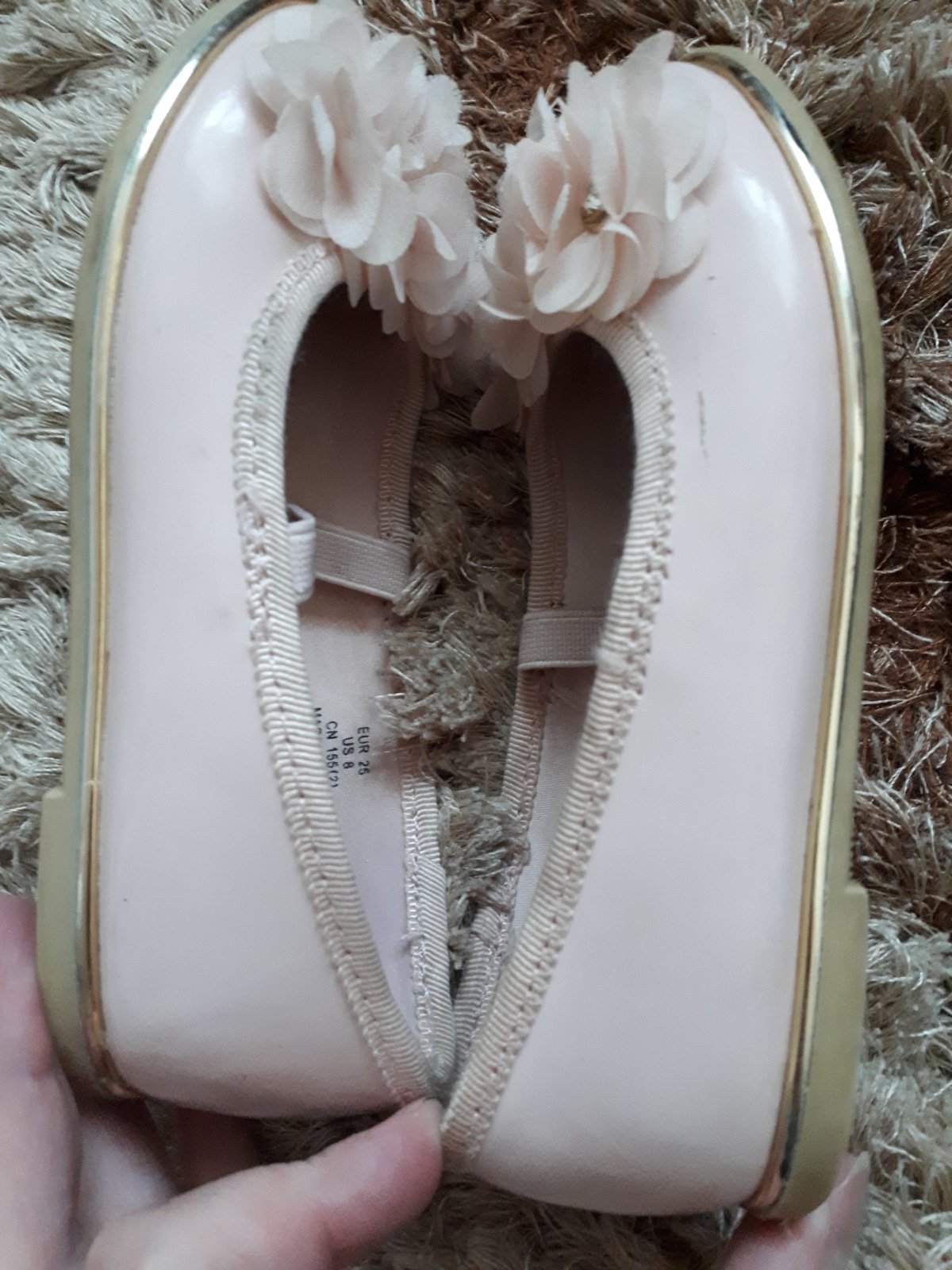 Predám nosené balerinky. Značka H&M veľkosť 25, boli nosené,ale šetrili sme ich. Majú nejaké známky používania,ale stále ešte krásne. Fotky v galérii.